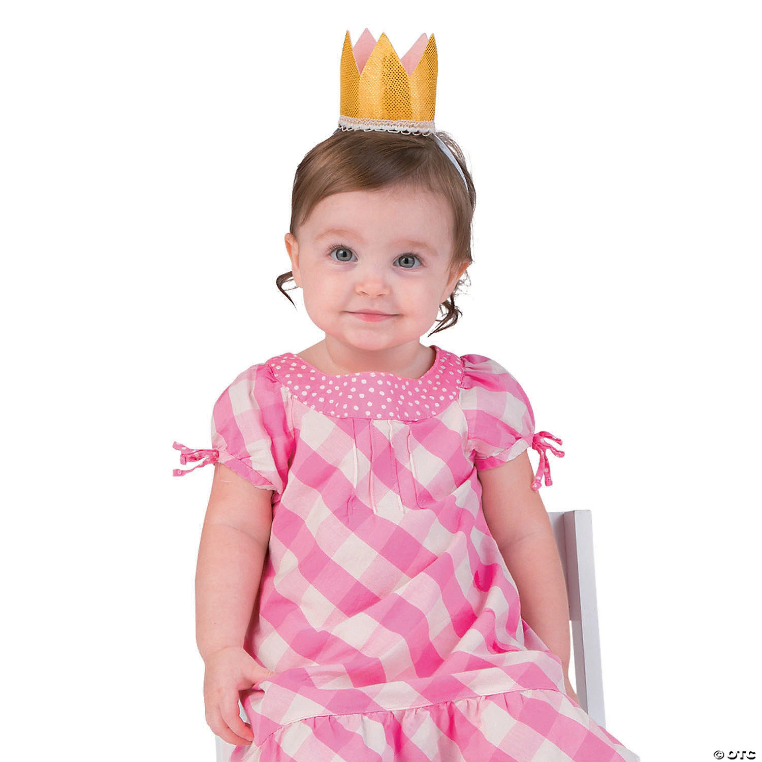 She’ll be princess for a day at her first birthday party in this glitter-covered crown! It’s a cute photo prop and a wonderful way to show her that the day is all about her. Dress her in her favorite pink outfit, add the crown and watch her shine. Felt. 8 1/2″ diam. x 3″ with an elastic band.