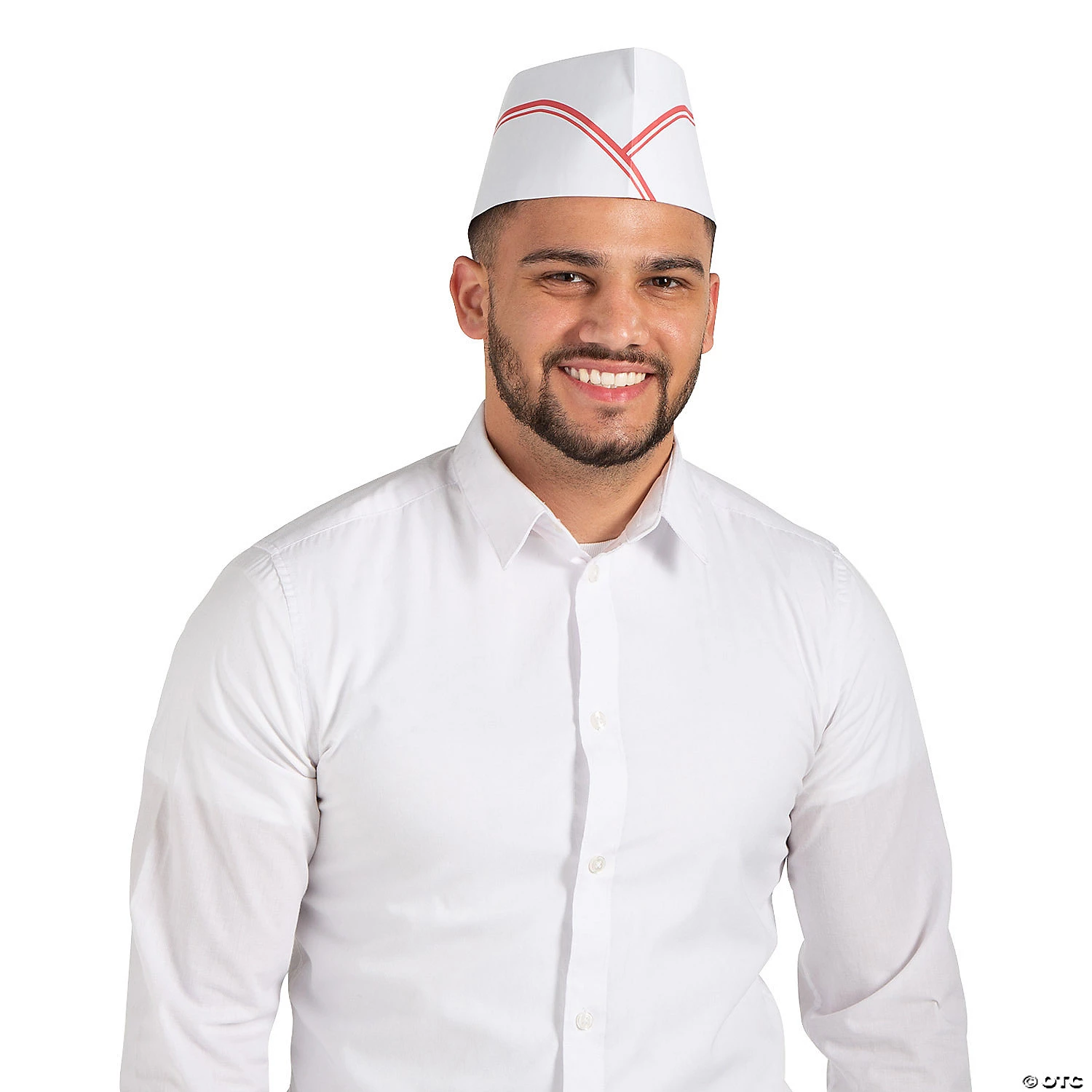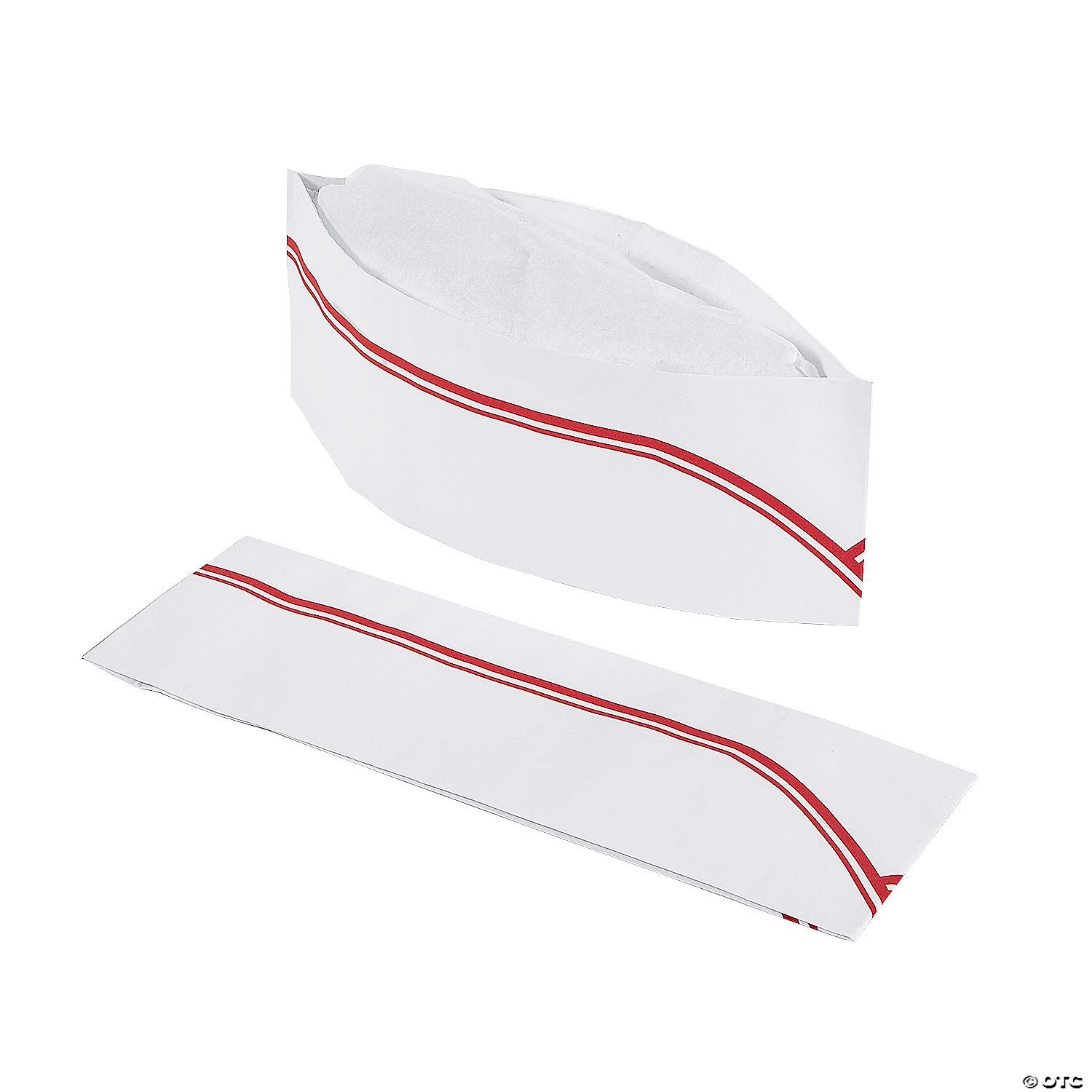 With a classic red stripe, these paper hats look just like the ones you’d see on a 50s diner soda jerk! Fun for nostalgic party supplies, these party hats take the place of classic birthday cone hats for a fun celebration. They also make great costume accessories for a 50s themed play or skit. Cardstock. 11-1/2″ x 4″