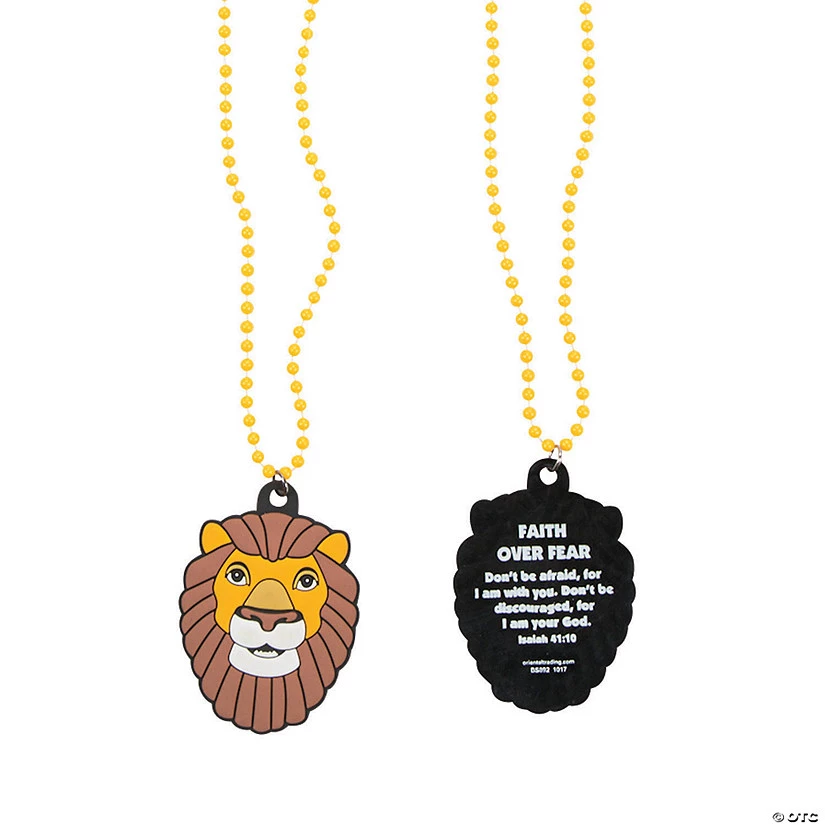A main topic of the Babylon VBS theme is keeping your faith even during times of turmoil. Use these Babylon VBS Beaded Necklaces to help illustrate a story that really explores that topic: Daniel in the Lion’s Den. These necklaces have a serious-looking lion on one side of the charm and the Isaiah Bible verse on the other that celebrates “Faith over Fear”. These necklaces make great VBS giveaways and prizes. Find more Babylon VBS supplies and giveaways elsewhere on this website. Plastic and rubber. 24″ with 5mm beads and a 2″ x 2 1/2″ rubber charm. © OTC