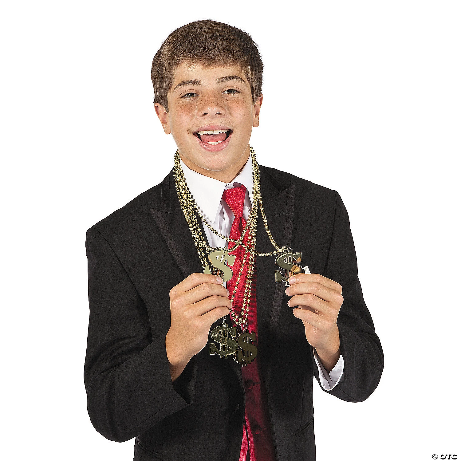 Sometimes fashion is all about the bling! These Dollar Sign Beaded Necklaces let the world know you love money! Each 2 1/2″ plastic metallic dollar sign pendant is on a strand of beads. They make great party favors or party decorations at birthday parties, and can be used as Mardi Gras party supply beads. Plastic. 30″ with 6mm beads.