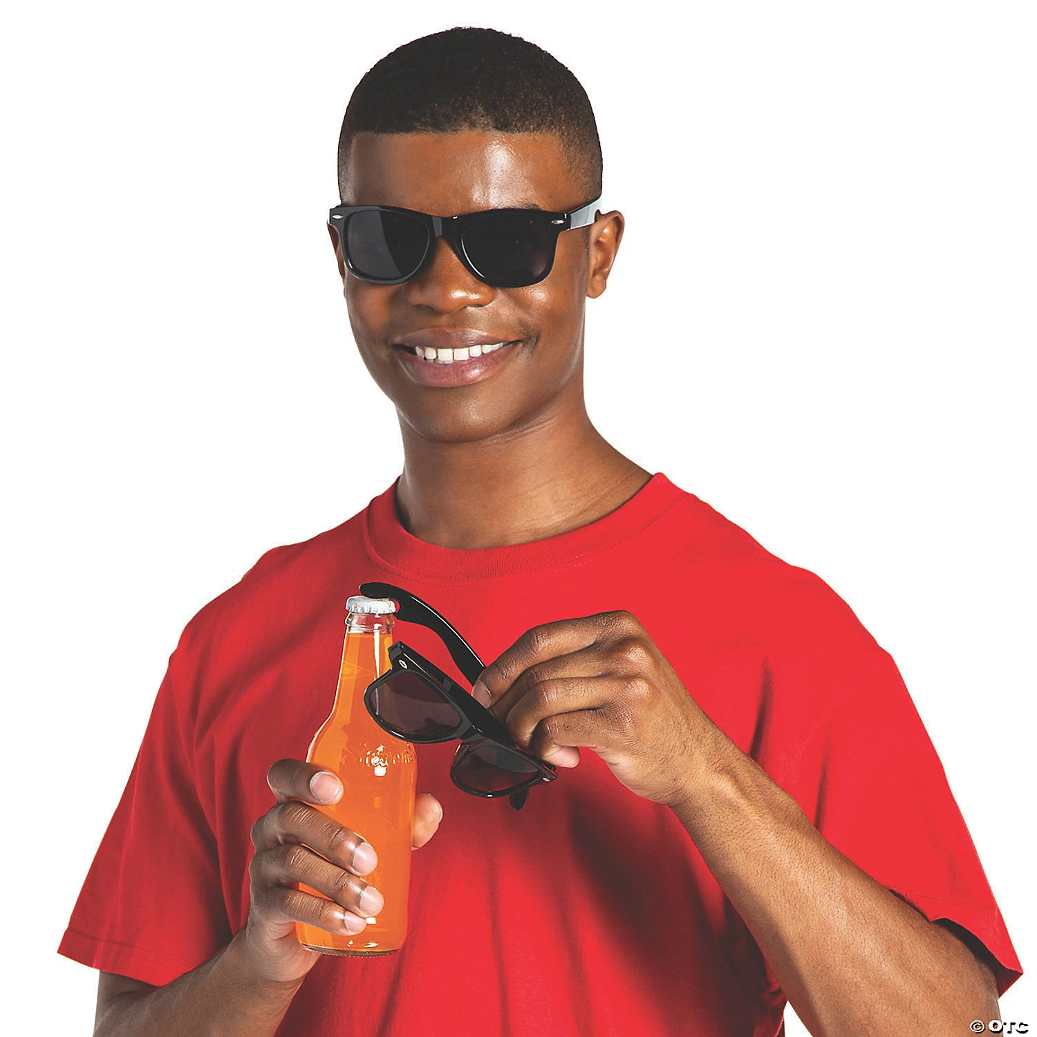 Crack a cold one open and look cool doing it! A great addition to wedding favors and bridal party gifts, these novelty sunglasses feature a classic black look but feature grooves on the side that can really be used to pop the cap off bottles. All your groomsmen will love sporting these handy accessories during your big day. Beyond weddings, sunglasses like this are great party favors at any summer shindig or backyard BBQ! For novelty use only. Plastic. (6 pcs. per unit) 5 1/2″ x 2″ with 6″ ear pieces.