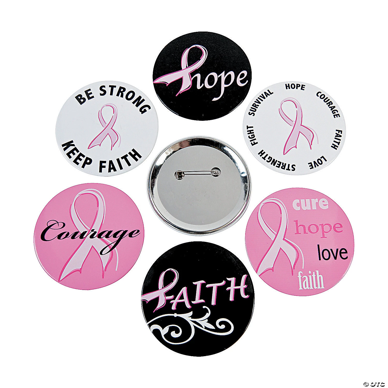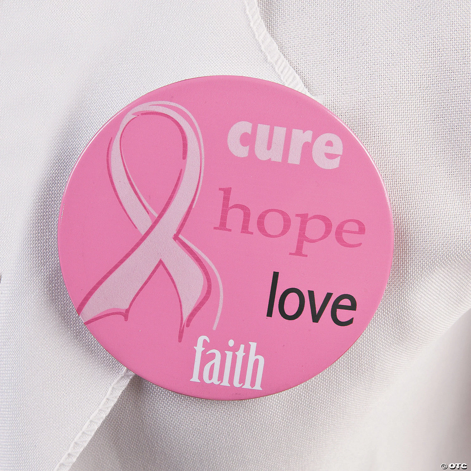Attach these inspirational Breast Cancer Awareness Buttons to jackets, bags, giftbags and more for an inspirational burst of hope this October and beyond! These pink ribbon buttons are perfect giveaways at your next Breast Cancer Awareness event! Put these in your party giftbags and show your support! Metal. (2 dozen per unit) 3″ © OTC