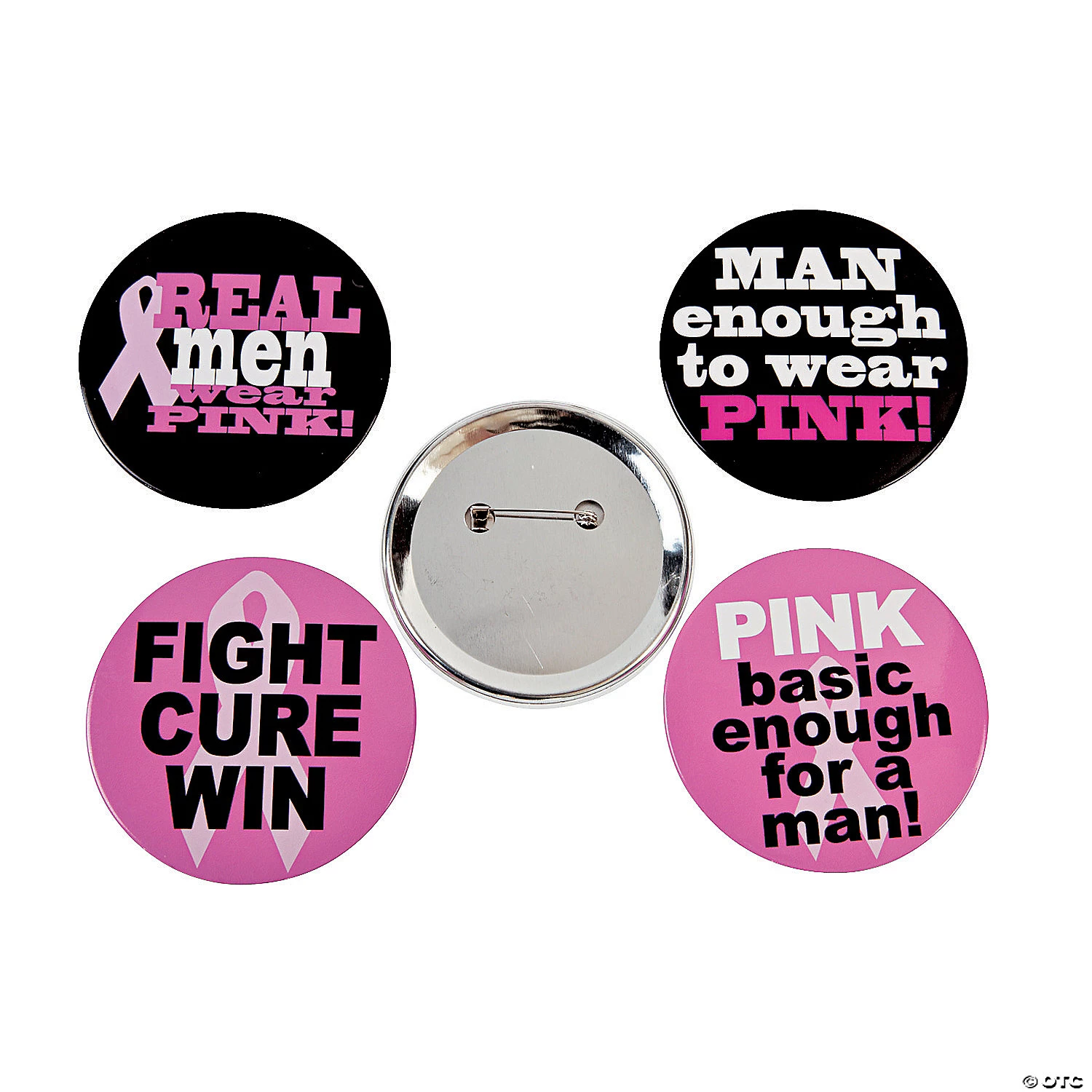 It’s time to man up and wear some pink! These Breast Cancer Awareness Buttons for Men are perfect for husbands, boyfriends and sons. Because men support the breast cancer awareness cause, too! Have them ready for your next pink ribbon event. Metal. (2 dozen per unit) 3″ © OTC