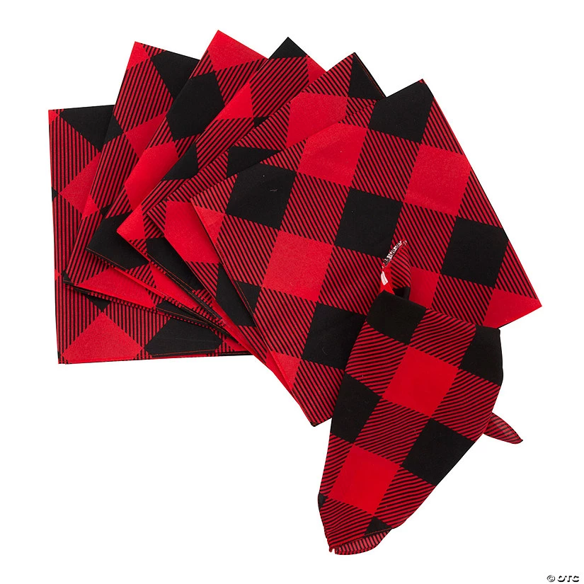 The buffalo plaid pattern is a little rustic while also looking rugged. This versatile pattern is great for BBQs or even for holiday celebrations. Tuck these into gift bags for wedding guests as party favors or as a way to wipe their brows during a hot summer outdoor wedding. These also look great worn as head scarves or around the neck like a cowboy. Polyester. 20″ x 20″ © OTC
