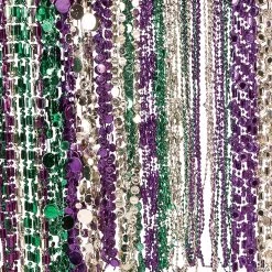 This Mardi Gras Beaded Necklace Assortment includes plenty of Mardi Gras beads to wear and hand out to your crowd! An essential favor for your Mardi Gras party or Fat Tuesday parade, these Mardi Gras beads come in a variety of styles and are the perfect addition to your Mardi Gras photo booth and party favor bags! Layer these beaded necklaces for a fashionable flair or toss them into the crowd for an unbeatable Mardi Gras celebration. Plastic. (144 pcs. per unit) 33″ with 4mm – 7mm beads. Assortment may vary. © OTC