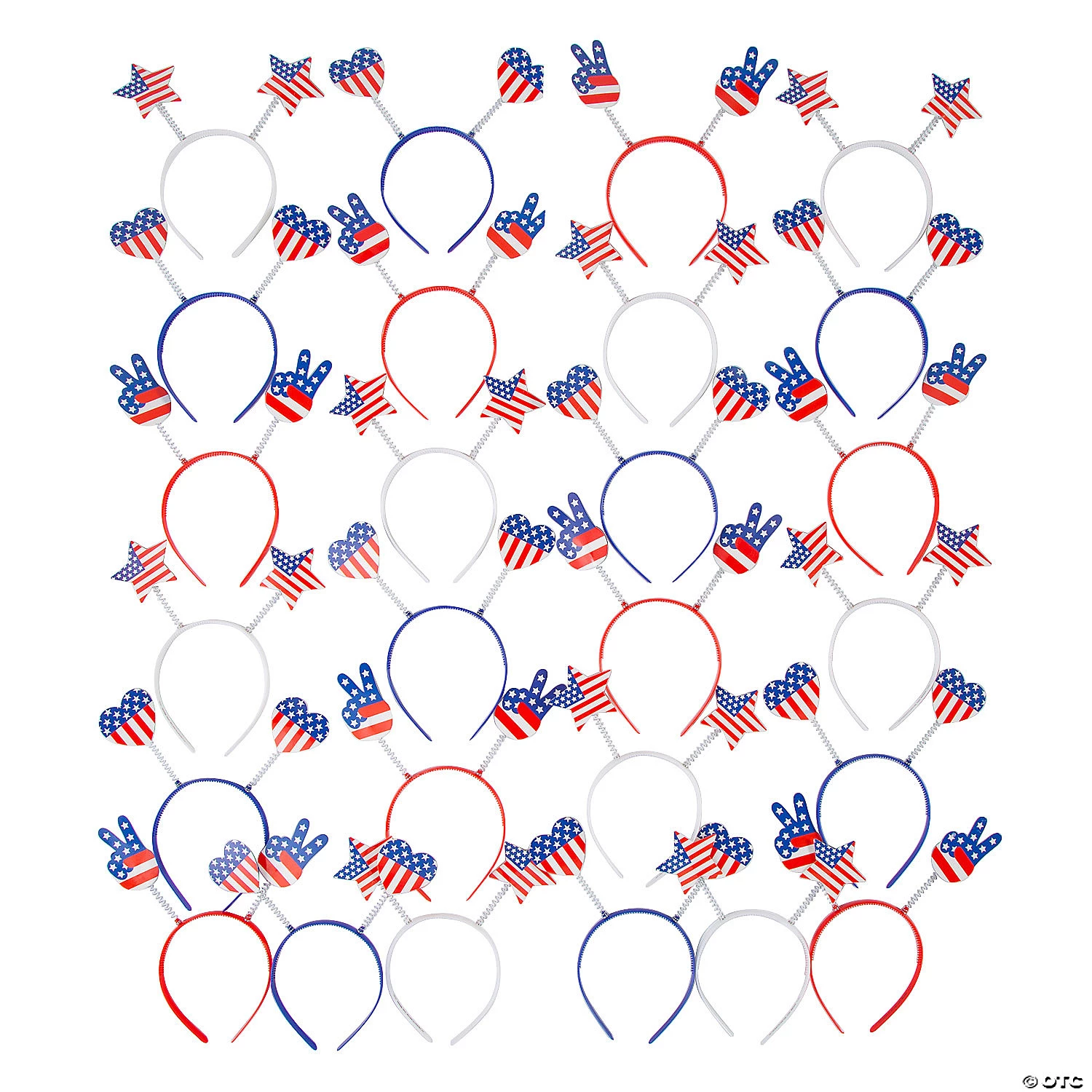 These patriotic head boppers are a fun way to show your excitement for the Fourth of July. Give this patriotic apparel away as parade handouts, Independence Day party favors and more. Kids will have fun wearing these upbeat red, white and blue accessories! Plastic with cardstock cut-outs. (4 dozen per unit) 5″ x 5 1/2″ headbands with 2″ – 2 3/4″ boppers. Ā© OTC