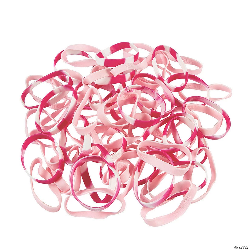 Show you care with these pink ribbon bracelets. Perfect as giveaways for breast cancer awareness events like races or fundraisers, or during Breast Cancer Awareness month, these bracelets will be worn proudly by breast cancer awareness advocates and survivors. It’s a great way to make a powerful statement without saying a word. Rubber. (144 pcs. per unit) 7 1/4″ – 8″. Assortment may vary.