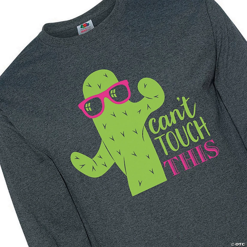There’s no denying that the cactus theme is trending, and it’s no surprise why – cacti are adorable! This funny shirt for adults features a prickly cactus character and the words “can’t touch this.” Wear it out to a Fiesta themed party, a Cinco de Mayo celebration or parade, or just as a go-to t-shirt while running errands or hanging around the house. © OTC