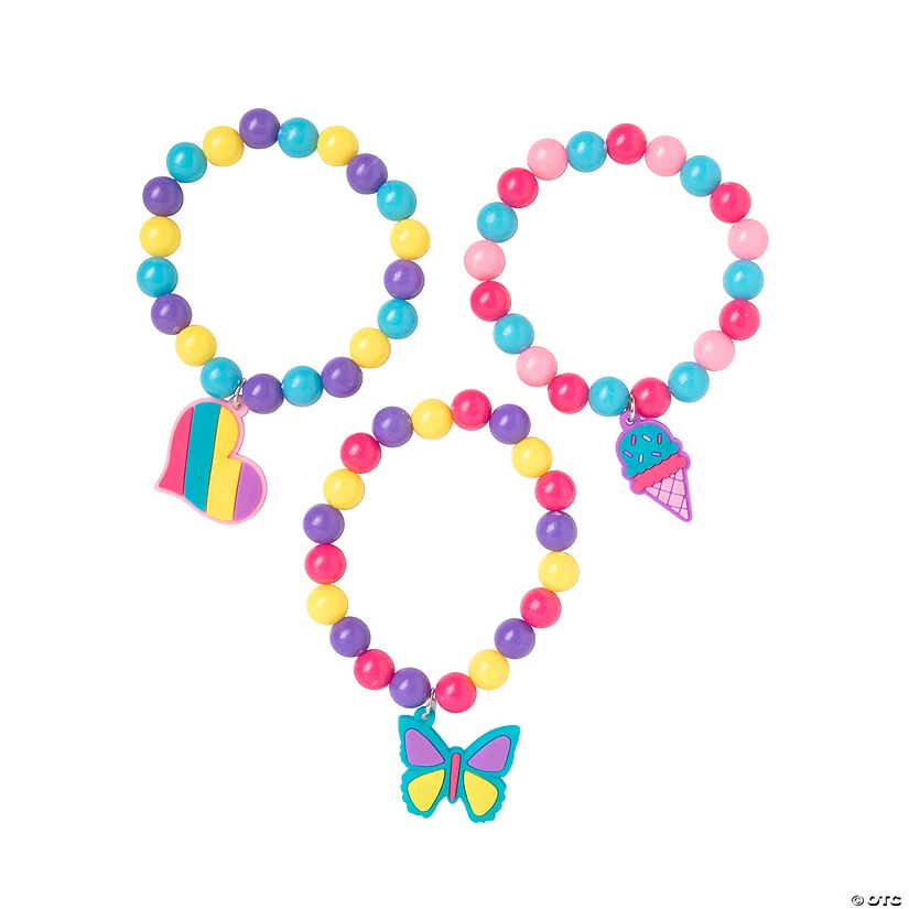 These beaded charm bracelets are colorful and downright charming! Each bracelet has colorful beads along with a fun charm, making these beads a stylish choice for classroom prizes or rewards, party favors or as kidsā giveaways. These bracelets will slip nicely into party favor bags and can be worn long after the party ends. Plastic. 2 1/2″ circ. with 1 1/4″ charm. Ā© OTC