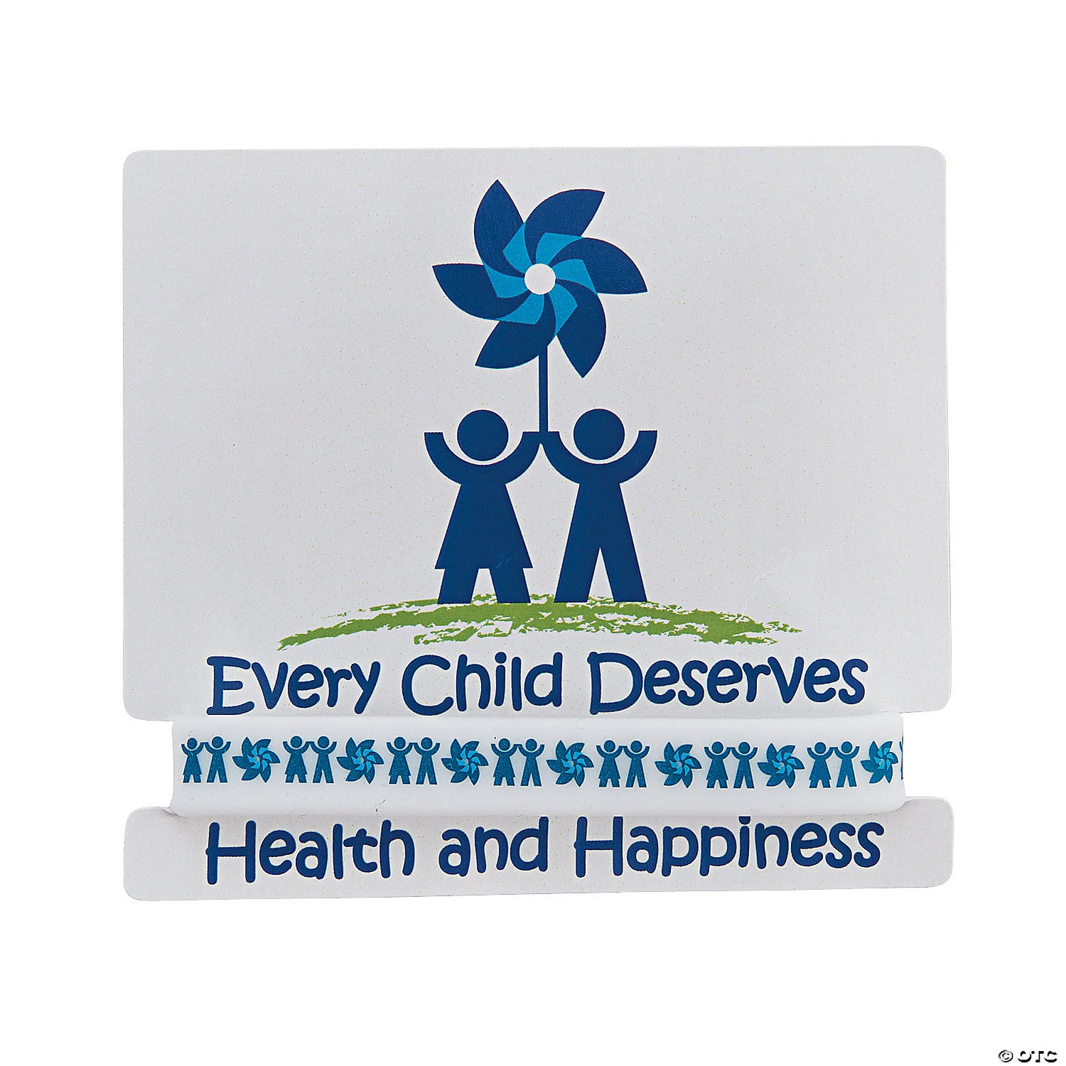 Wear a reminder every day about an important and often life-threatening issue when you don one of our comfortable Child Abuse Awareness Bands. These rubber bracelets are perfect giveaways and door prizes at fundraisers and banquets. Hand them out to participants in 5K marathons and at demonstrations. Teach students about the importance of this issue when you hand some out in class as you incorporate child abuse awareness into your lesson plan – give children a wearable reminder that it’s important to report abuse, because they could save a life. Wear a bracelet yourself to honor a special survivor in your life, and layer it with bracelets promoting awareness of other causes that are close to your heart. Rubber. 7 1/4″ bracelet on a 4″ card. © OTC