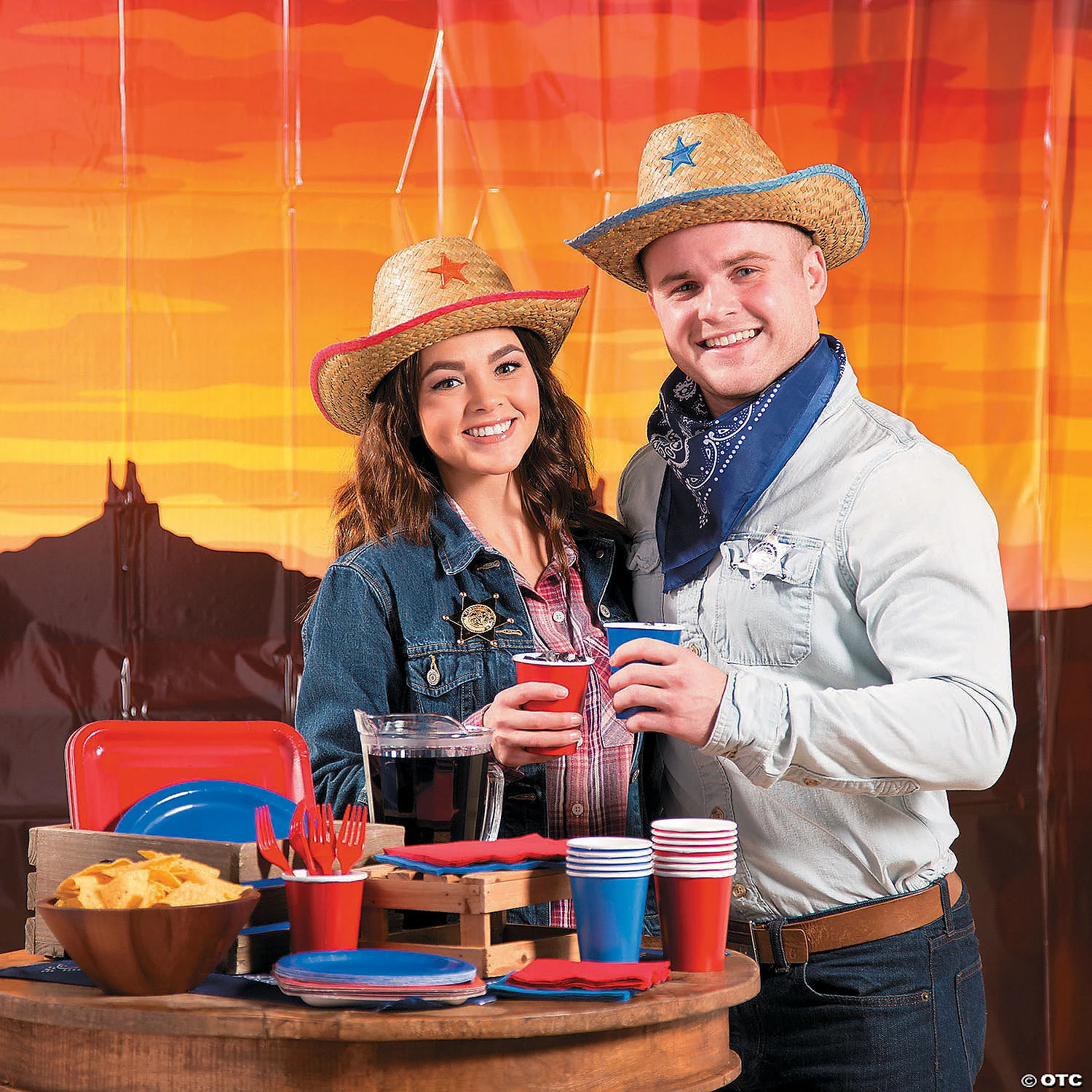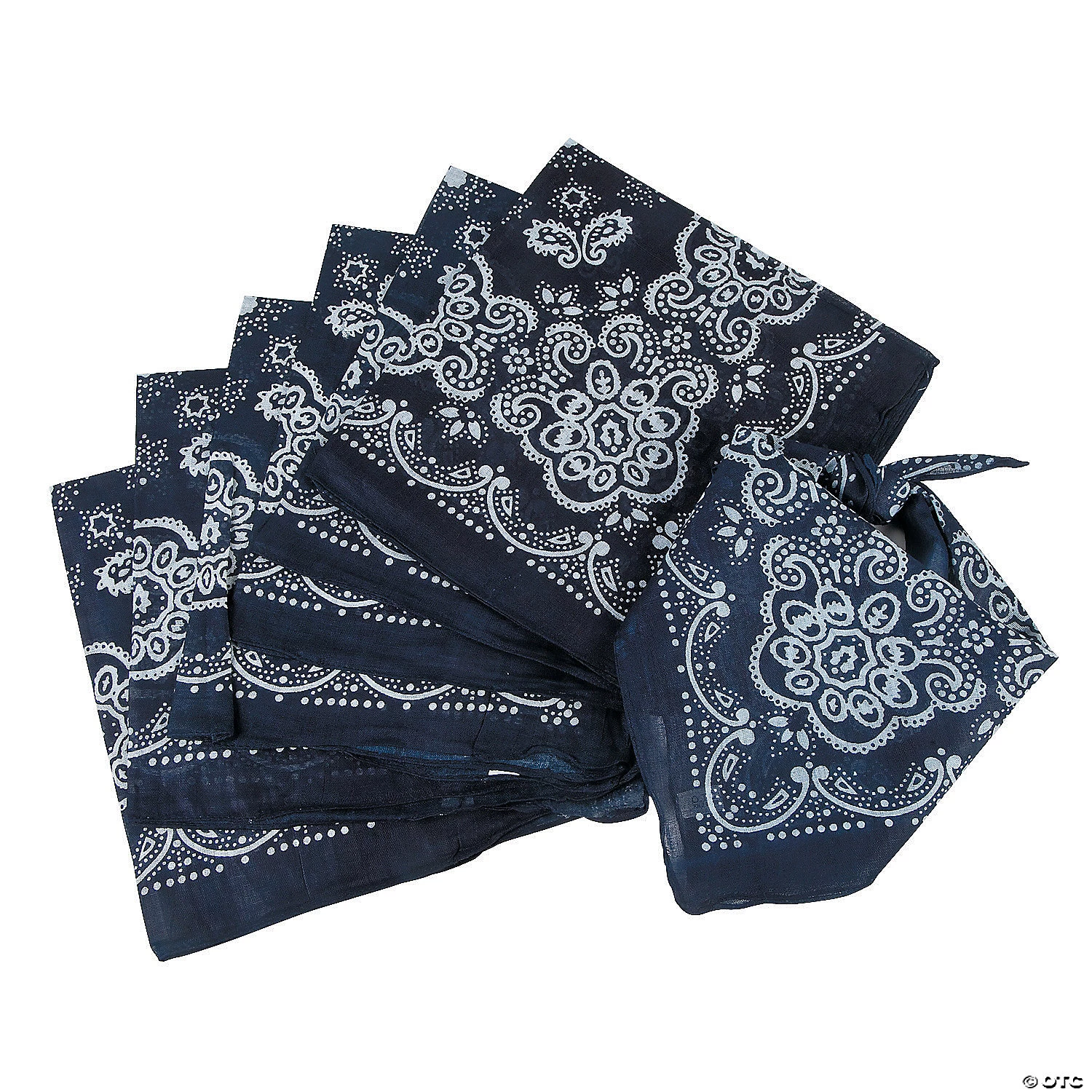 These bold Classic Navy Bandanas have a classic Western look! Add them to any cowboy or cowgirl costume or put them in goody bags or party favor bags at a Western-themed party. Make pillows out of these handkerchiefs for whimsical décor in your home on the range. Even a stuffed animal looks cute wearing one! Polyester. 20”
