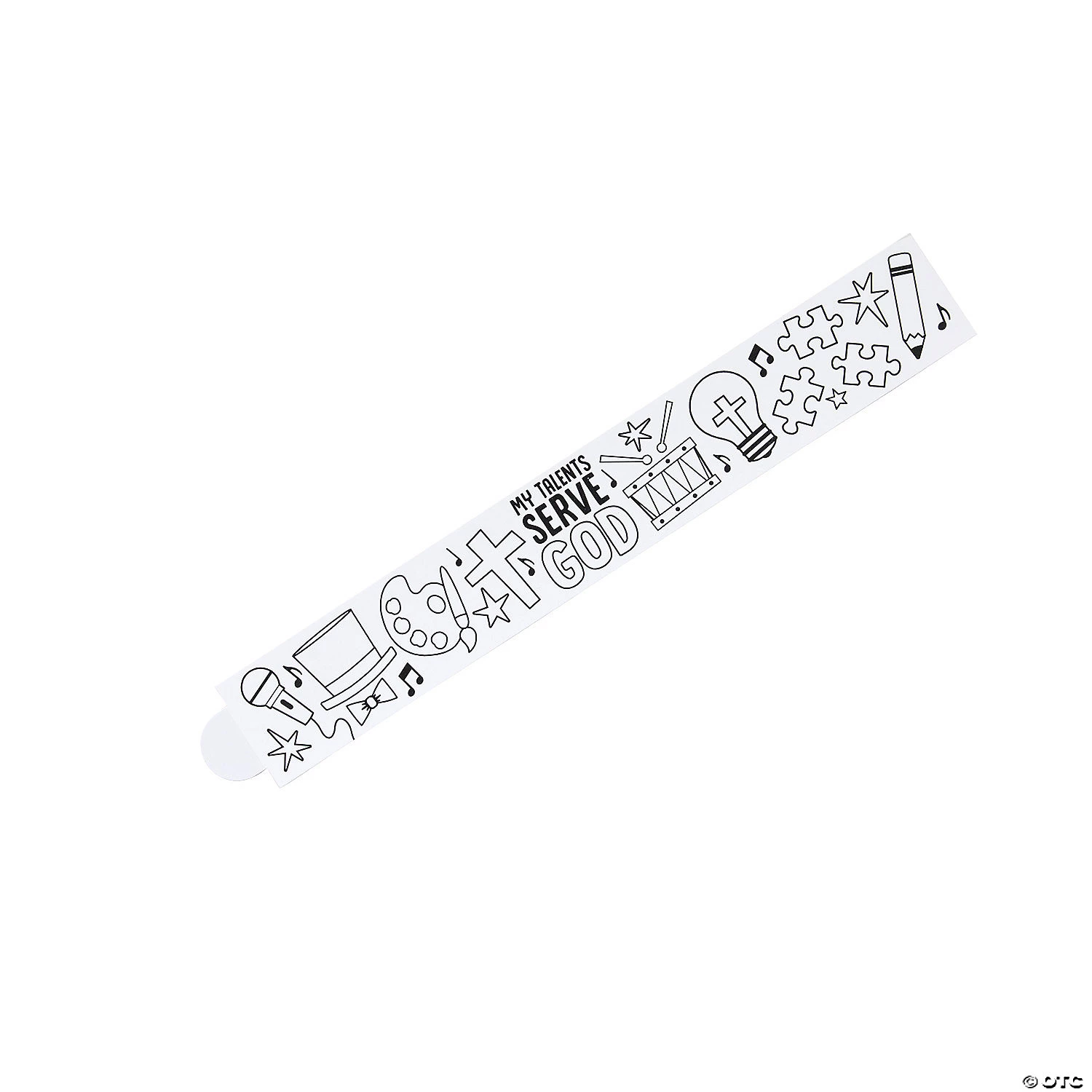 Help Studio VBS kids feel welcomed to VBS by giving them a bracelet as they enter the Studio VBS space. A great way to keep track of who signed in at registration, these paper bracelets also make fun and simple activities at the craft table. Each colorable bracelet features Studio VBS messaging and images. Includes adhesive tab closure. Paper. (50 pcs. per unit) 9″ x 1 1/4″ © OTC
