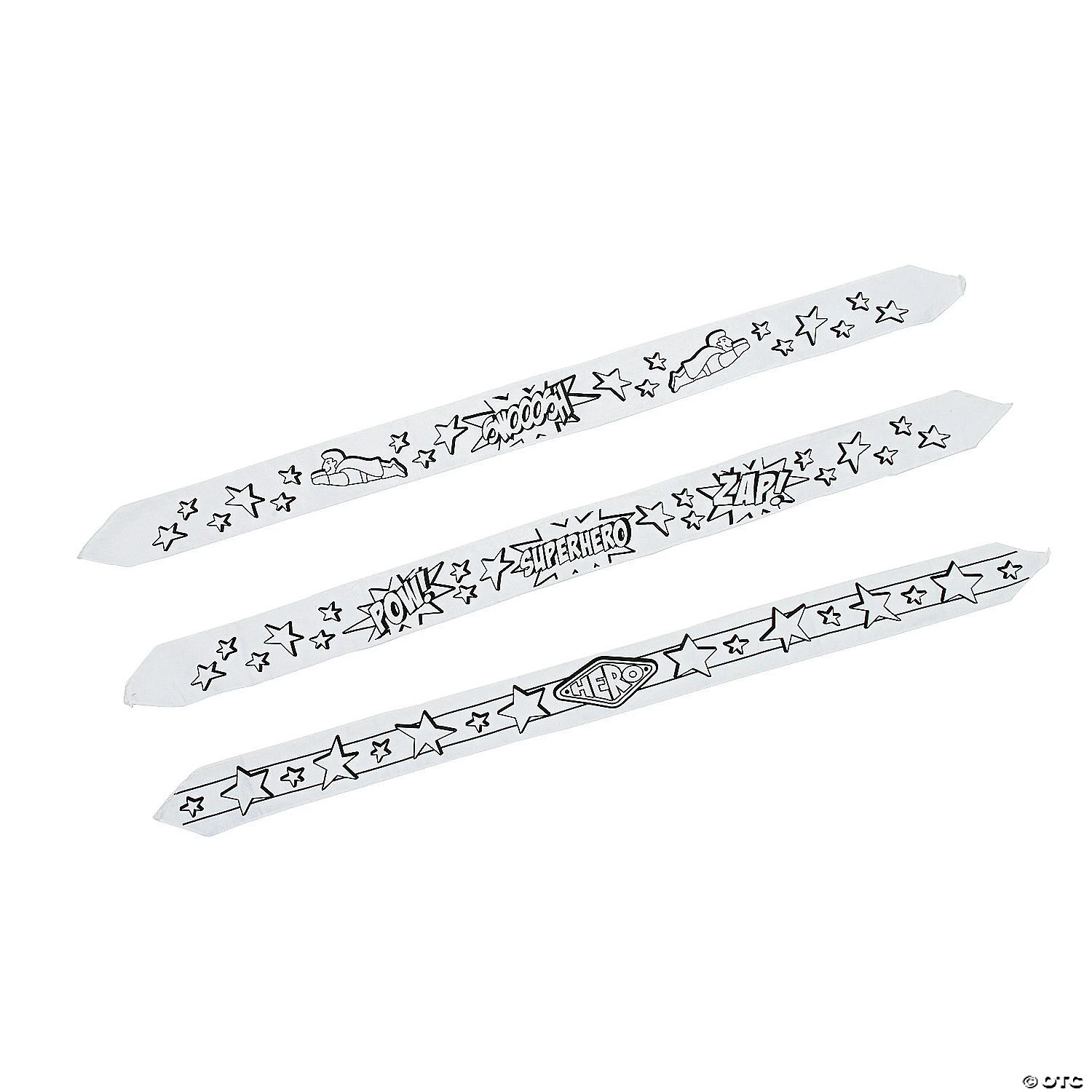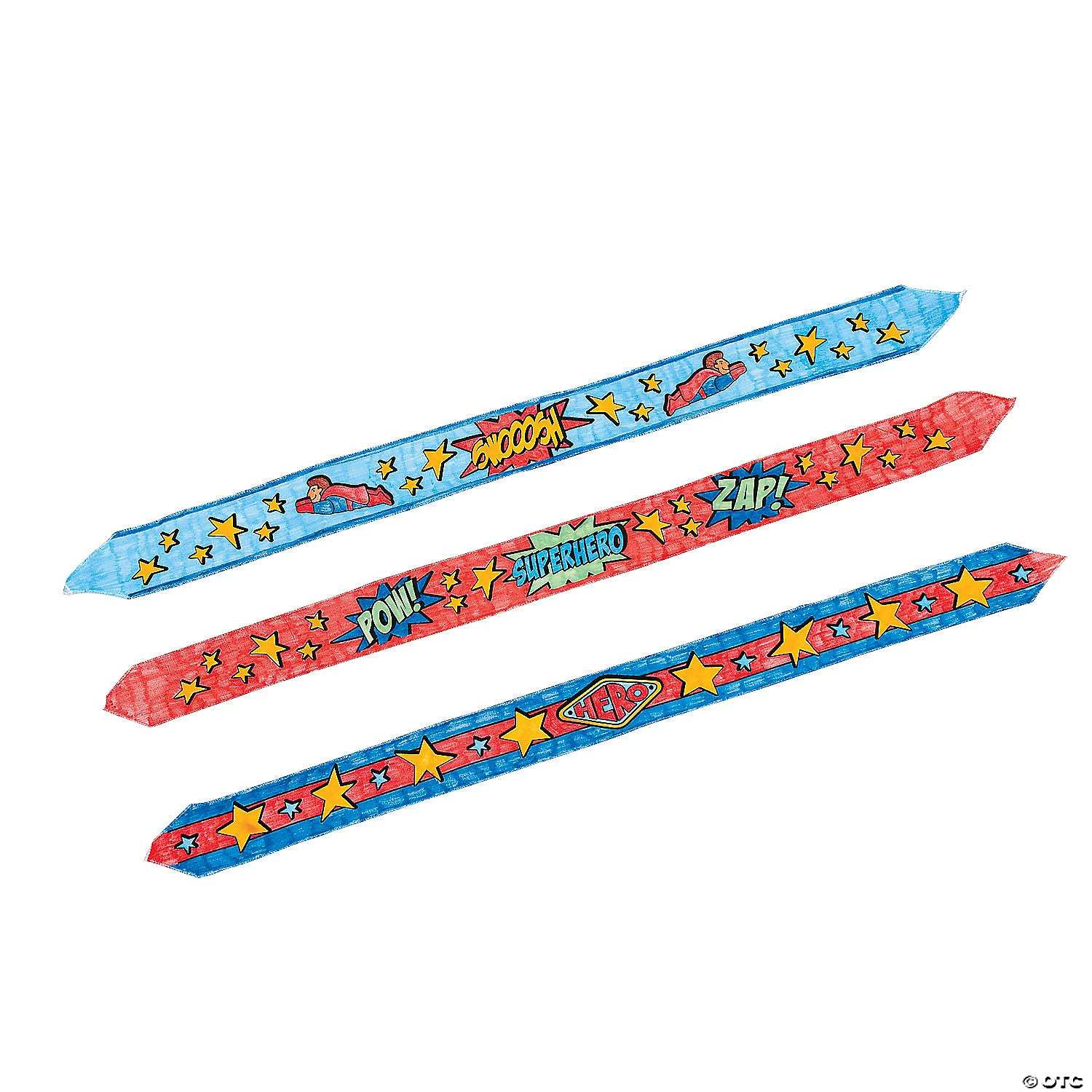 Use creativity as your own superpower with these Color Your Own Super Hero Tie-On Headbands! Whether you’re making a handmade superhero costume or just looking for fun crafts for kids, this awesome accessory is as much fun to create as it is to wear. Featuring action words such as “Pow” and “Zap,” each dynamic headband can transform any ordinary kid into their favorite superhero. Permanent markers recommended. 33 1/2″ © OTC