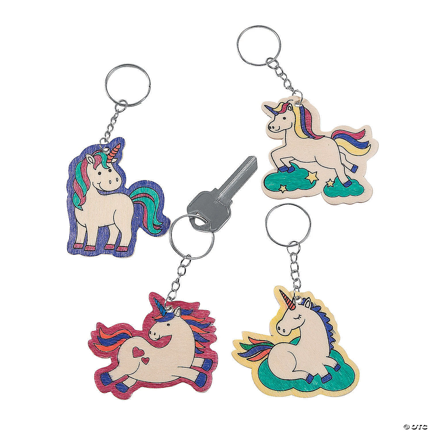 Help them create magical keychains with these wooden unicorn shapes! Using their own markers they can make each one unique and either keep it for themselves or use it as a DIY gift for a friend or family member. Design is on one side only. Wood. 2 1/2″ keychain on a 1″ metal ring. © OTC