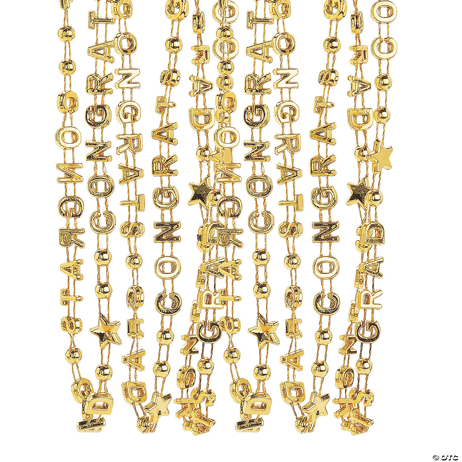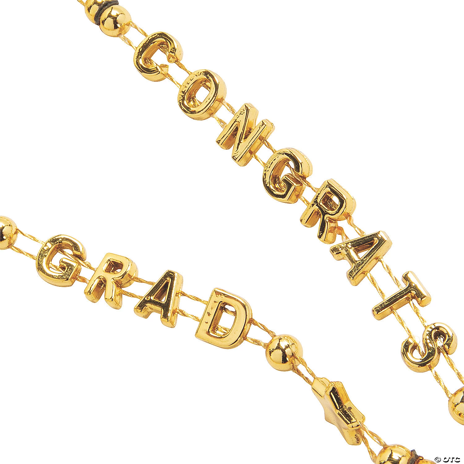 Help the graduate feel like a rock star with these shiny beaded necklaces. The beads on each necklace spell out “Congrats Grad”, making these necklaces the perfect graduation party favor or senior giveaways. A great choice for gold-themed graduation parties, these necklaces will quickly wind up on the necks of guests and the graduate alike! Plastic. (48 pcs. per unit) 32″