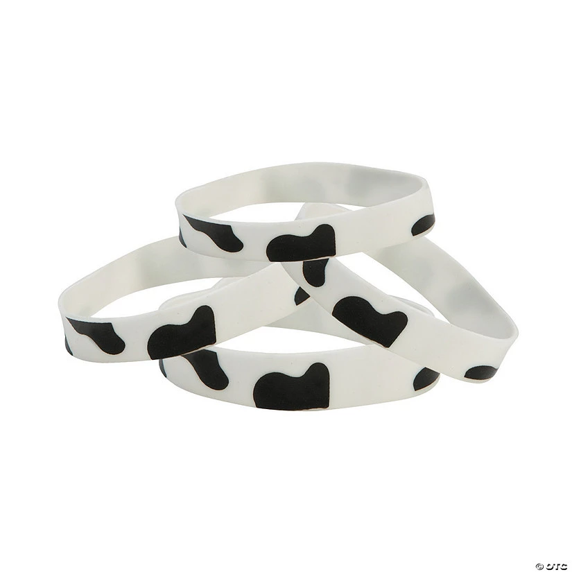 Your barnyard or farm-themed party supplies aren’t complete without these Cow Print Bracelets! Featuring a black-and-white cow print, these novelties will have guests mooing with delight! Put in party favor bags and hand out to your guests, or use them use as rewards for creative party games. Mix and match for even more fun! Rubber. 7″ circ. © OTC
