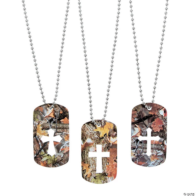 Clad in camo, these Cross Cutout Camouflage Dog Tag Necklaces are a fun way to honor your faith. They’re a great addition to your party and VBS supplies, and you can give them away for birthdays in your Sunday School classroom, or hand them out as party favors for birthdays at home! Metal. Each 2″ dog tag is on a 24″ ball chain. © OTC