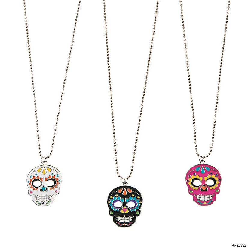 Sport a sugar skull with these Day of the Dead Necklaces! Fun for your Day of the Dead celebration or Halloween party, each 18″ metal ball chain necklaces features a detailed 1 14″ x 1 1/2″ metal skull pendant. Discover even more accessories and Day of the Dead party supplies on our website! © OTC