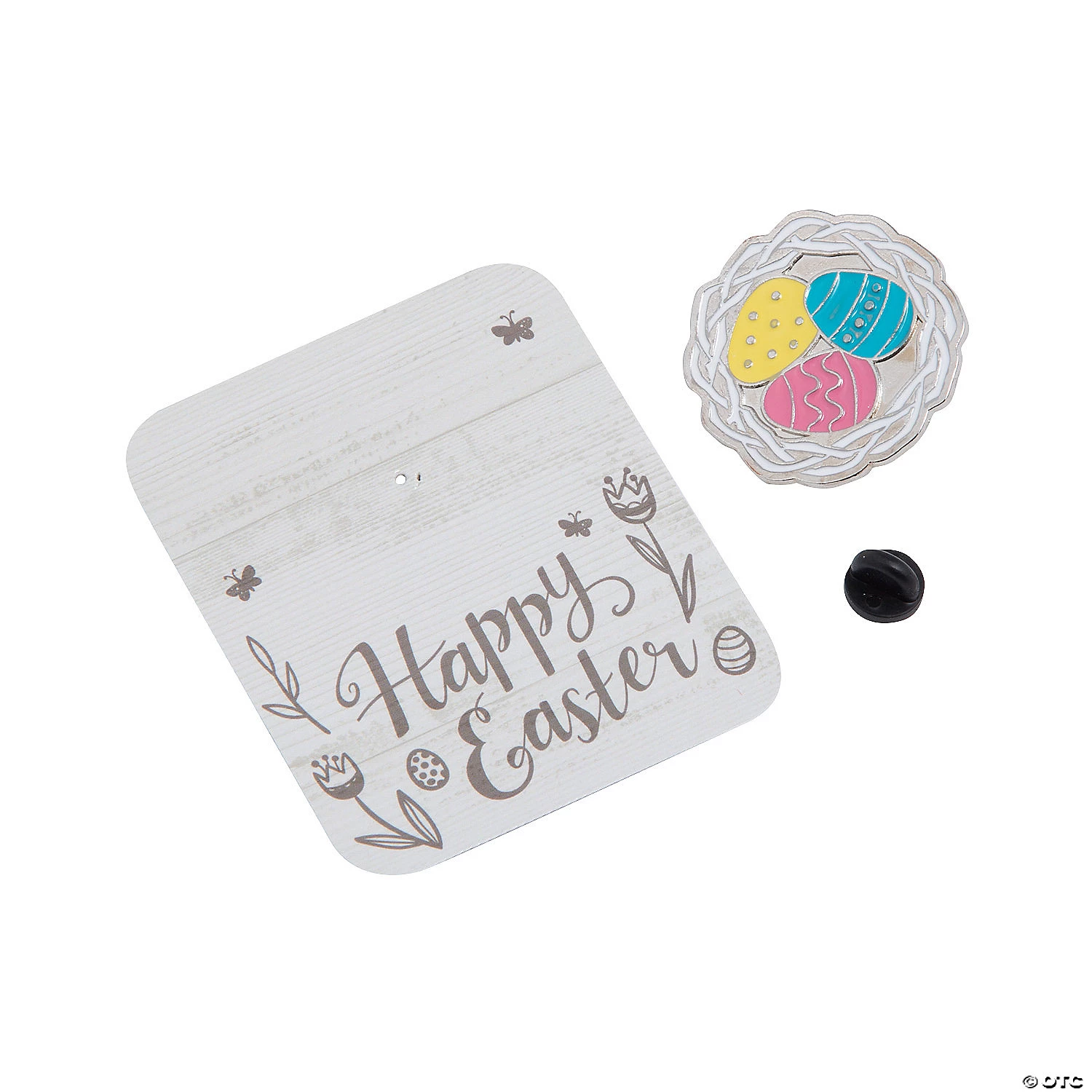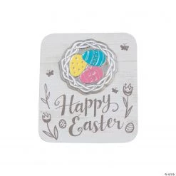 Spread Easter cheer with these lovely nest pins. Perfect as Easter handouts and giveaways for adults, these pins look like decorated Easter eggs stacked in a nest and come with a cardstock card featuring a âHappy Easterâ message in a pretty script. These non-religious Easter handouts are great for employees, clients and loved ones. Metal. 1 1/2″ pin with 2 1/2″ x 3″ cardstock card. Š OTC