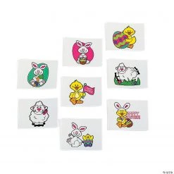 These Easter Tattoos make a creative Easter basket stuffer or slip them into Easter eggs for a clever alternative to candy. Everyone loves temporary tattoos! Put a bunny on your arm or leg to celebrate Easter! These festive tattoos are easy to apply and remove. Safe and non-toxic. (6 dozen per unit) 1 1/2″ © OTC