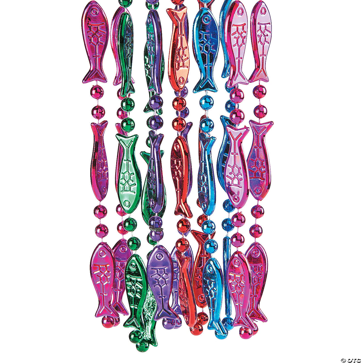 Just like real fish, these fish bead necklaces come in a variety of eye-catching colors! Bring party favor goody bags to life or hand them out during your church’s trunk-or-treat events! They’re great for Easter baskets, Christmas stocking stuffers and Sunday School prizes, too! Plastic. (4 dozen per unit) 30″ with 29mm fish.