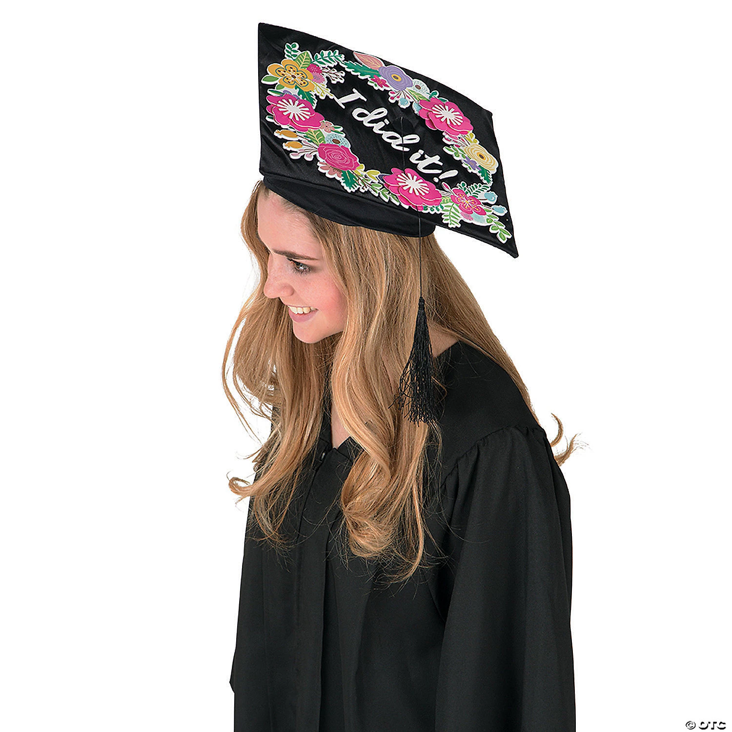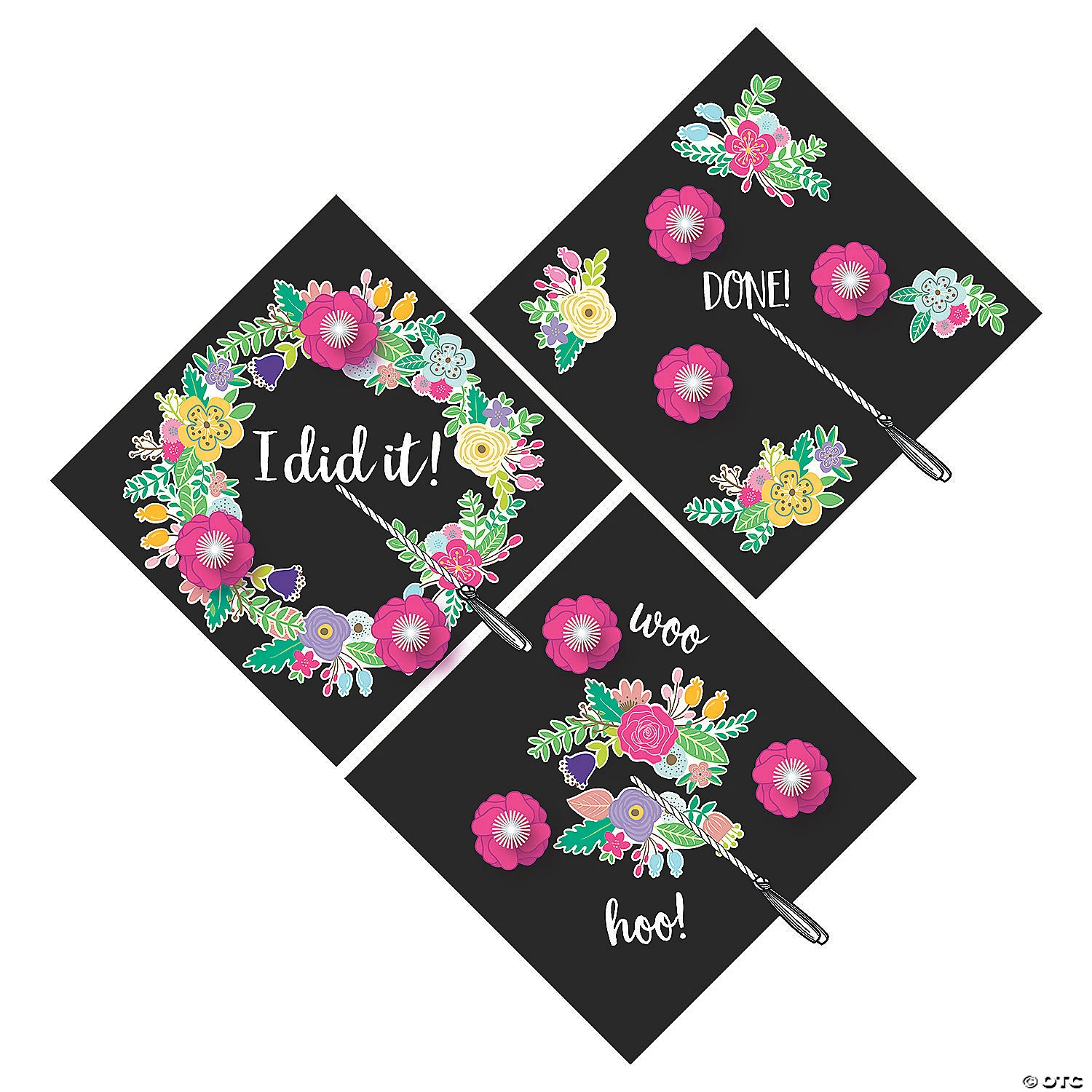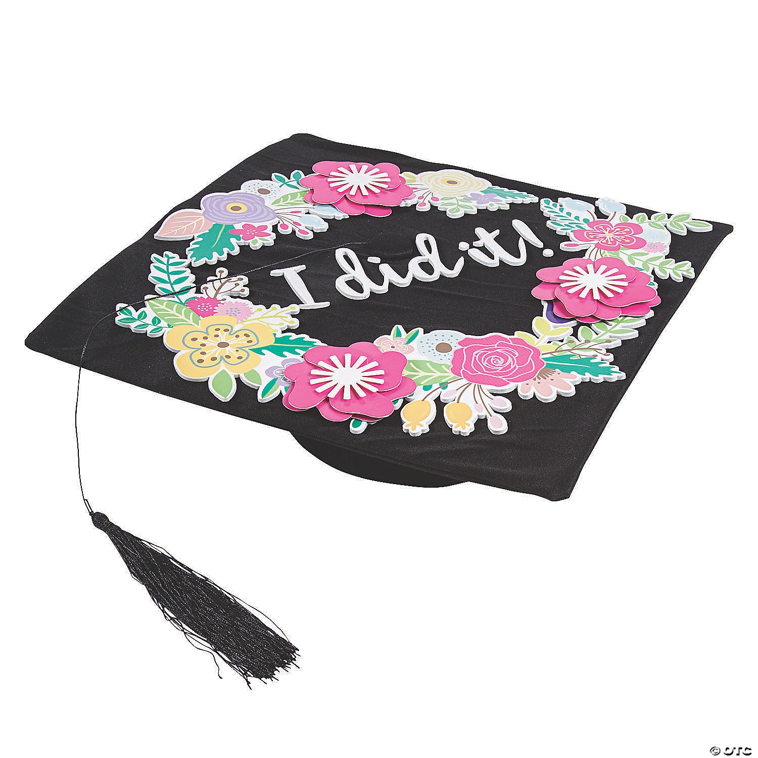 Make sure you stand out in the crowd during the graduation ceremony with this mortarboard decorating kit! The included instruction sheets gives three different decorating ideas, but you can mix and match all the pieces to create your perfect floral cap decoration. Self-adhesive foam pieces. (44 pcs. per unit) makes up to 4 kits. Pieces on 13″ x 9″ sheets. © OTCFloral Mortarboard Decorating Kit Instructions