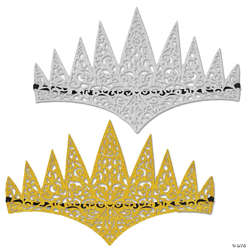 Perfect for a princess party! Glittery lightweight thin foam tiaras have a black 1/4″ elastic band for a one size fit. And you get a silver tiara and a gold tiara in each package! Elegant cut-out design is perfect for many historical periods and royalties. Good also for fairytale royalty! 2 tiaras in each package.Special Shipping Information: This item ships separately from other items in your order. This item cannot ship to a P.O. Box. This item may be subject to additional processing days.ITEM IS NOT ELIGIBLE FOR EXPEDITED SHIPPING