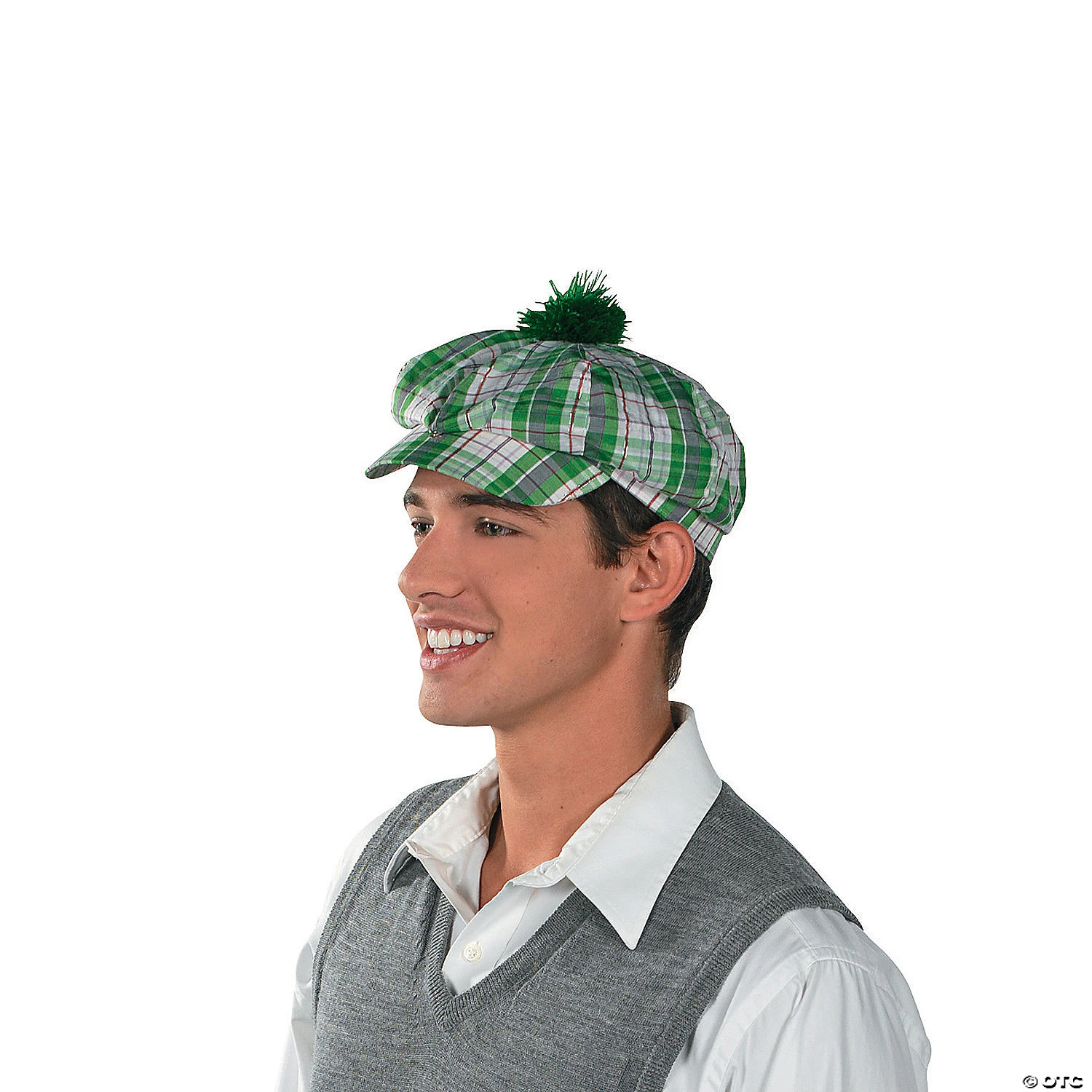 This Green Gatsby Hat is a great way to wear green on St. Patrick’s Day! This plaid cap will accent any St. Patrick’s costume or leprechaun costume and makes a fun golfer’s hat or Leprechaun hat for those costumes, too. Plaid polyester fabric and a pom-pom make this look super fun! 24″ circ.