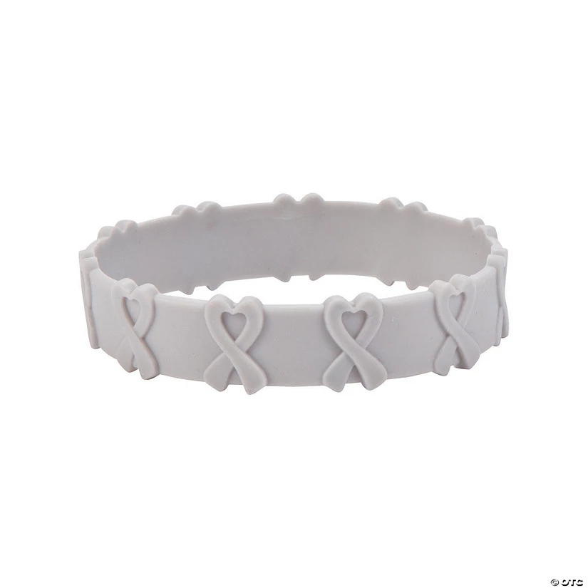 Each bracelet features a raised grey ribbon design to help with awareness for the grey ribbon cause you are passionate about! These ribbon cause bracelets are perfect giveaways for brain cancer awareness and fundraising events and much more. They also make thoughtful gifts for loved ones and family members who are supporting someone affected by one of the diseases or conditions associated with grey ribbons. Rubber. (2 dozen per unit) 7 3/4″ circ. Ā© OTC