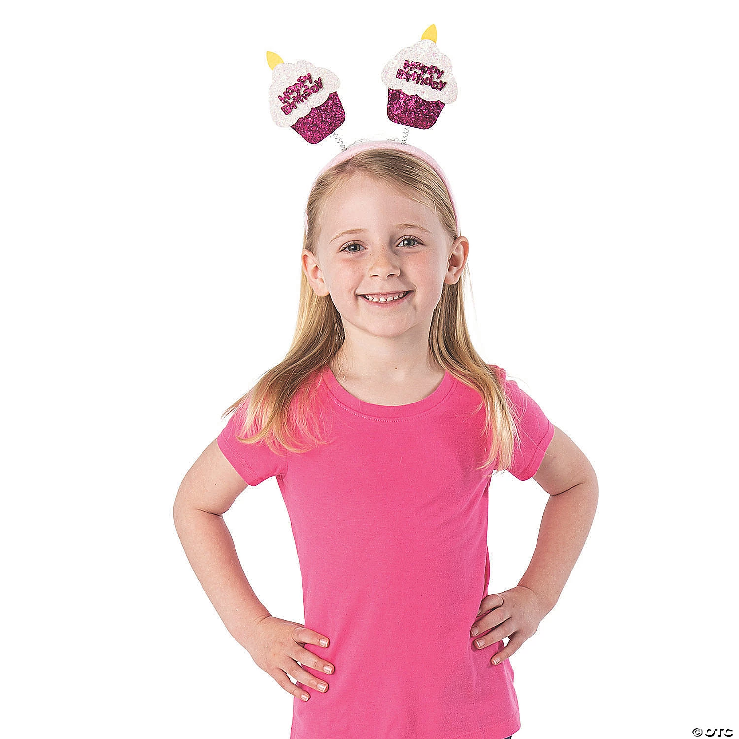 The perfect accessory for birthday parties, these cupcake headbands feature glittery cupcakes with a happy birthday message. Headbands are also fun photo booth props and party favors for the guest of honor and his or her friends. Celebrate your child’s birthday in style! Felt. 5 1/2″ headband with 3 1/4″ cupcakes.