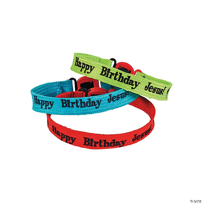 “Happy Birthday Jesus!” Friendship Bracelets. Wish Jesus a happy birthday with these festive red and green nylon bracelets! With fun cross clasps, this joyful jewelry makes an inspiring party favor at a Sunday School or youth group celebration. 7 1/2″ © OTC