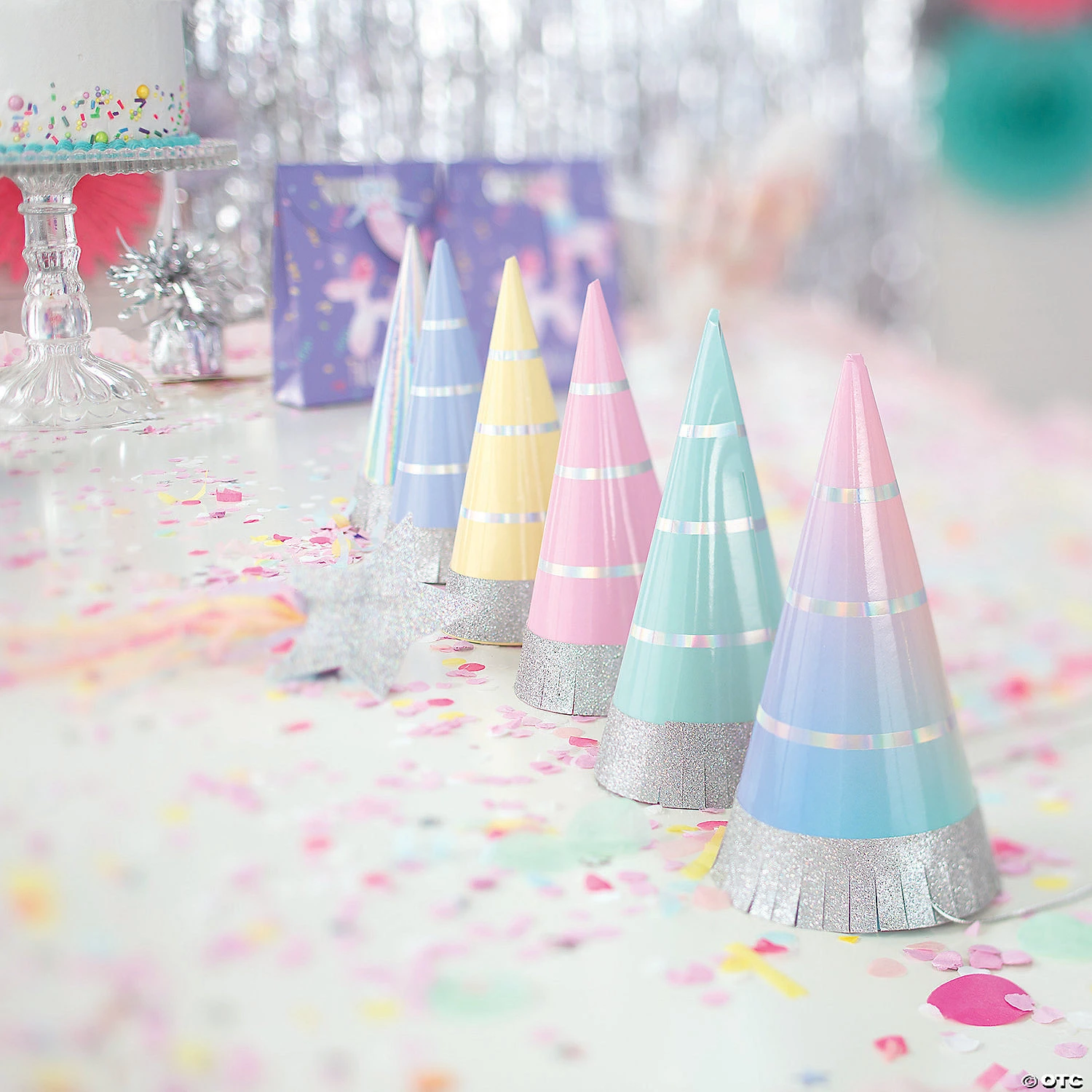 Party in pastel fashion! Featuring ombre patterns, sparkles and plenty of shimmering iridescent accents, these cone hats can’t be missed for birthday party supplies. Little ones of all ages (and fun-loving adults) will love sporting these from the moment they enter the celebration space to when the final piece of cake has been served. Each with an elastic band. Paper. (6 pcs. per unit) 6″ Simple assembly required.