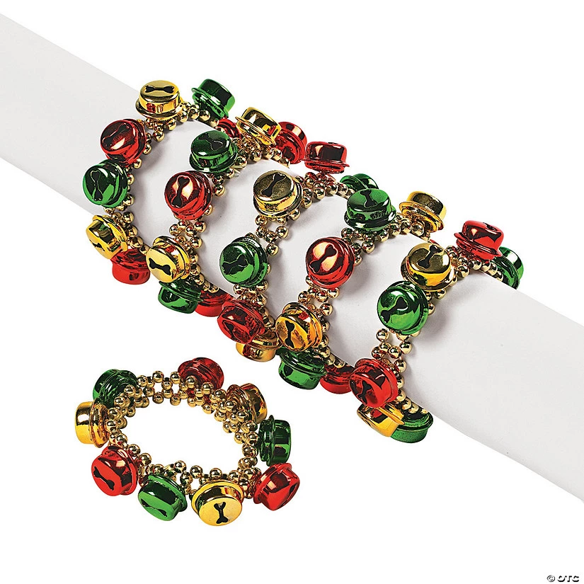 Jingle Bell Beaded Bracelets. Need festive Christmas jewelry? No problem! Our beaded bracelets have colorful beads and jingle bells on stretchy cords that fit everyone! Classrooms, holiday parties, children and adults will all enjoy these jingle bell bracelets! Plastic beads and metal bells on an elastic band. 6″ circ. Bracelets do not jingle. © OTC