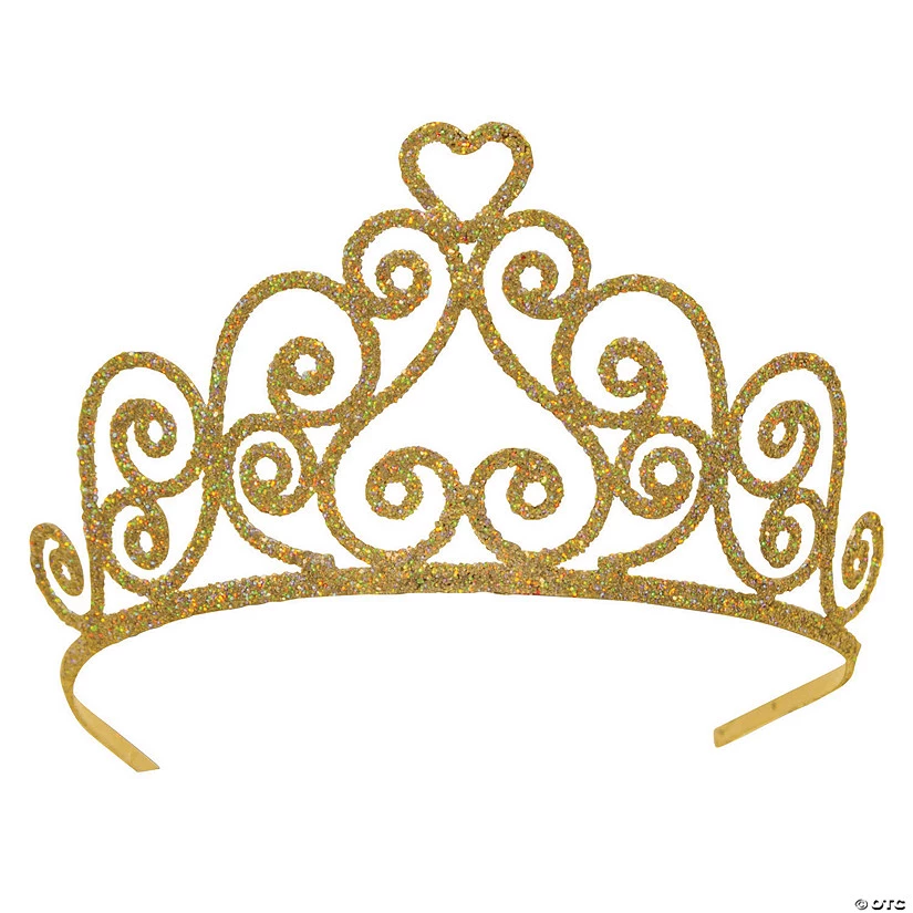 Dress up in this Kelsey Gold Glittered Metal Tiara for pageants, homecoming parades and more. It is the perfect accessory for all your special events. This gold metal tiara features hearts and scrolls and includes two attachable combs to secure the tiara in your hair. Metal. 2″ x 5″ diam. One size fits most.