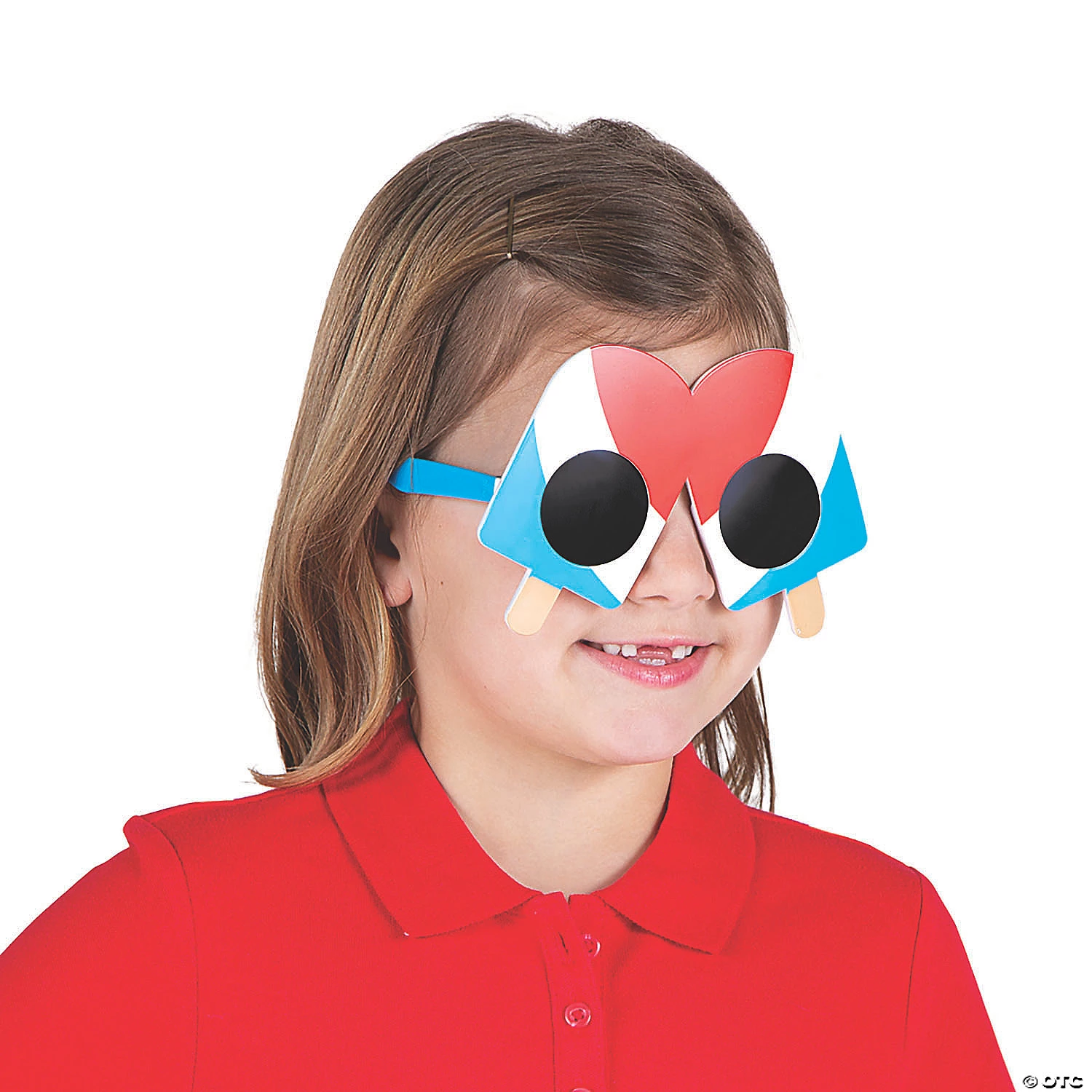 Fourth of July meets frozen treats meets fashion with this find. Sounds sweet! A must-have addition to patriotic party favors, these sunglasses come designed as two ice pops in red, white and blue. Your little patriots will love sporting these as they attend parades and wait for the big fireworks show to start! For novelty use only. Plastic. 5 1/2″ x 3 3/4″ with 5″ ear pieces. © OTC