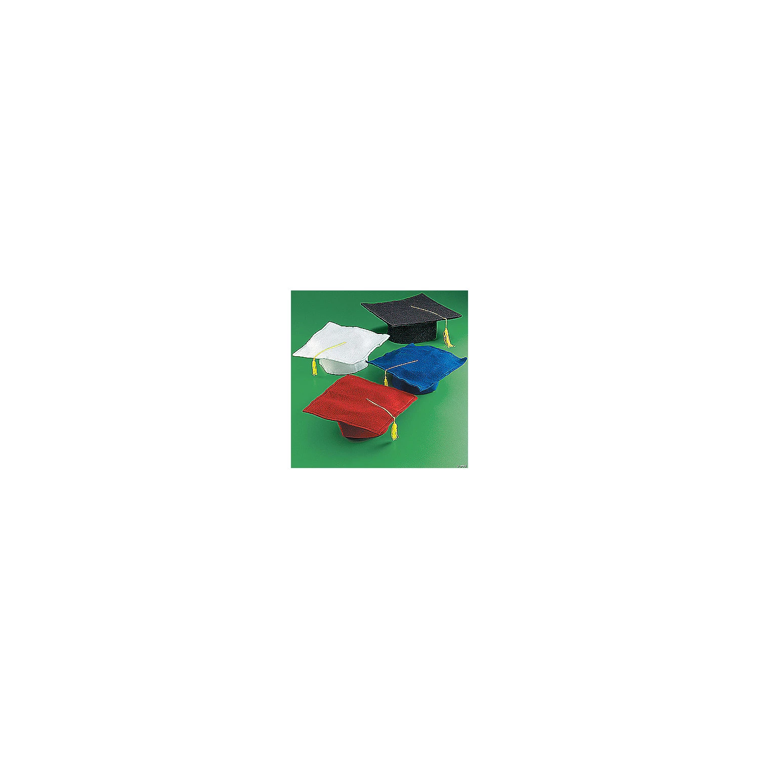 Made of soft felt and topped with a tassel, these Graduation Caps give your graduates a memorable keepsake. Every graduation ceremony — kindergarten, high school or college — is an important milestone! Graduation caps make those milestones even better. Match the color scheme of any school and graduation gown. Buy a dozen or more for the whole class or get just one for your star student! Felt. 21″ circ. with tassel. © OTC