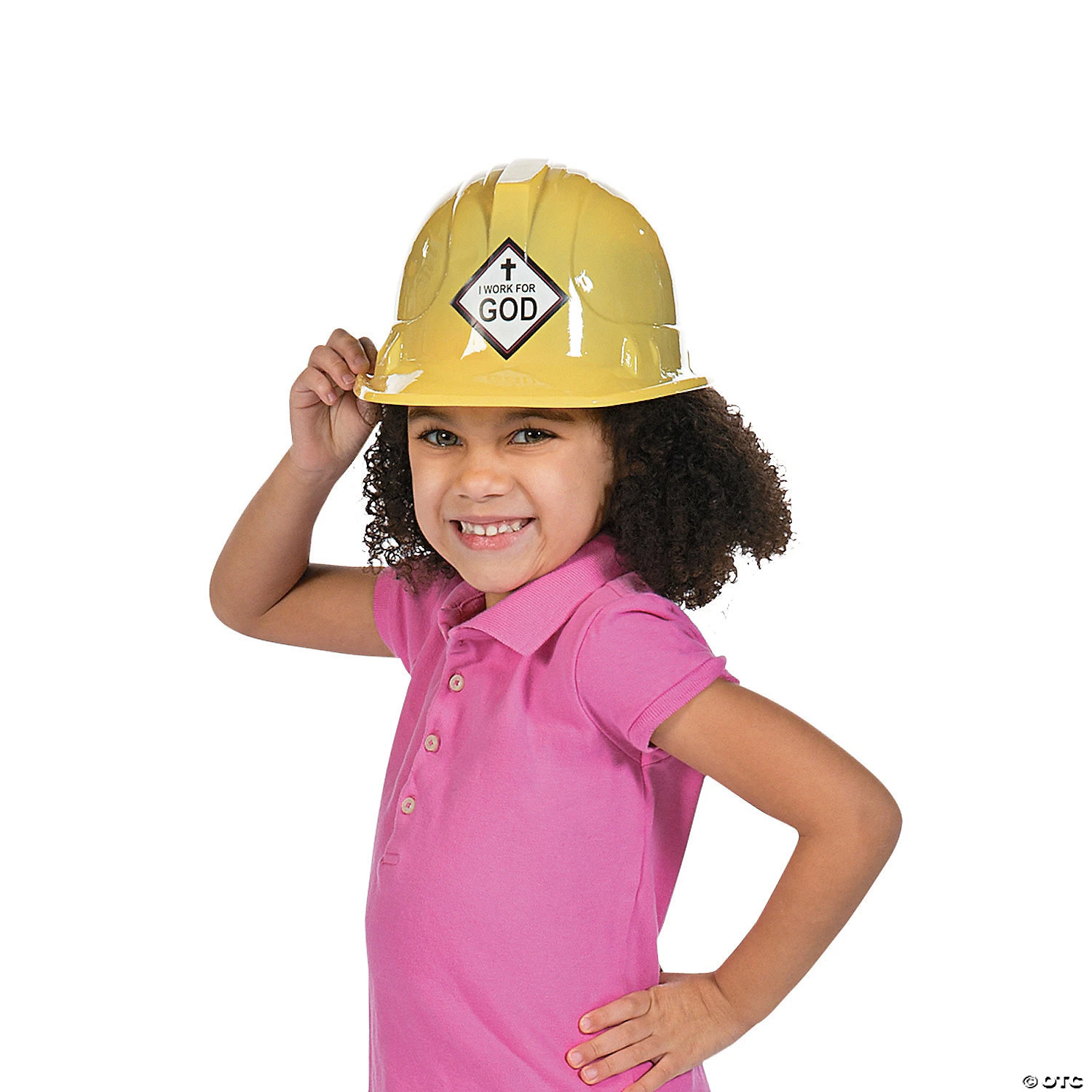 These construction hats are wonderful accessories for Sunday School or VBS students. Use these props while learning Bible lessons or Psalms, or hand them out on Halloween during trunk-or-treat, filled with candy and other goodies. Little workers love using these construction hats during playtime or during Bible School Camp adventures, and the emblem on the front is a constant and inspiring reminder of their faith. Plastic. 22″ circ. Not a protective helmet. One size fits most children. © OTC