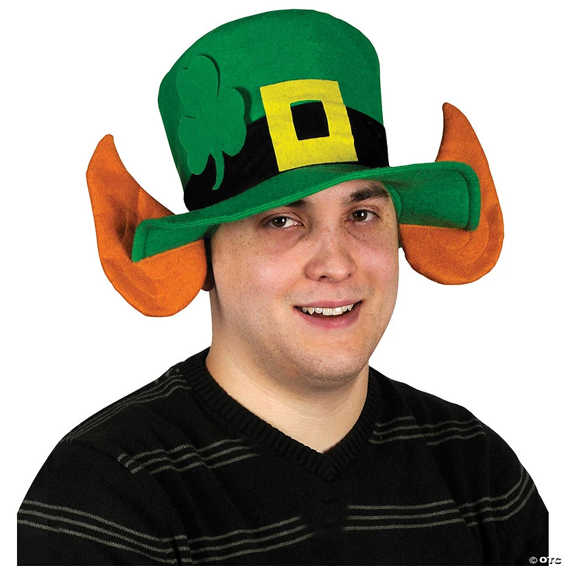 Felt Leprechaun Hat With Ears Adult/ Fun to wear for St Patrick’s day! This is a green fabric hat with orange pointed ears. It is decorated with a black and yellow buckle as well as a green shamrock. Available size: One size fits most.Special Shipping Information: This item ships separately from other items in your order. This item cannot ship to a P.O. Box. This item may be subject to additional processing days.ITEM IS NOT ELIGIBLE FOR EXPEDITED SHIPPING