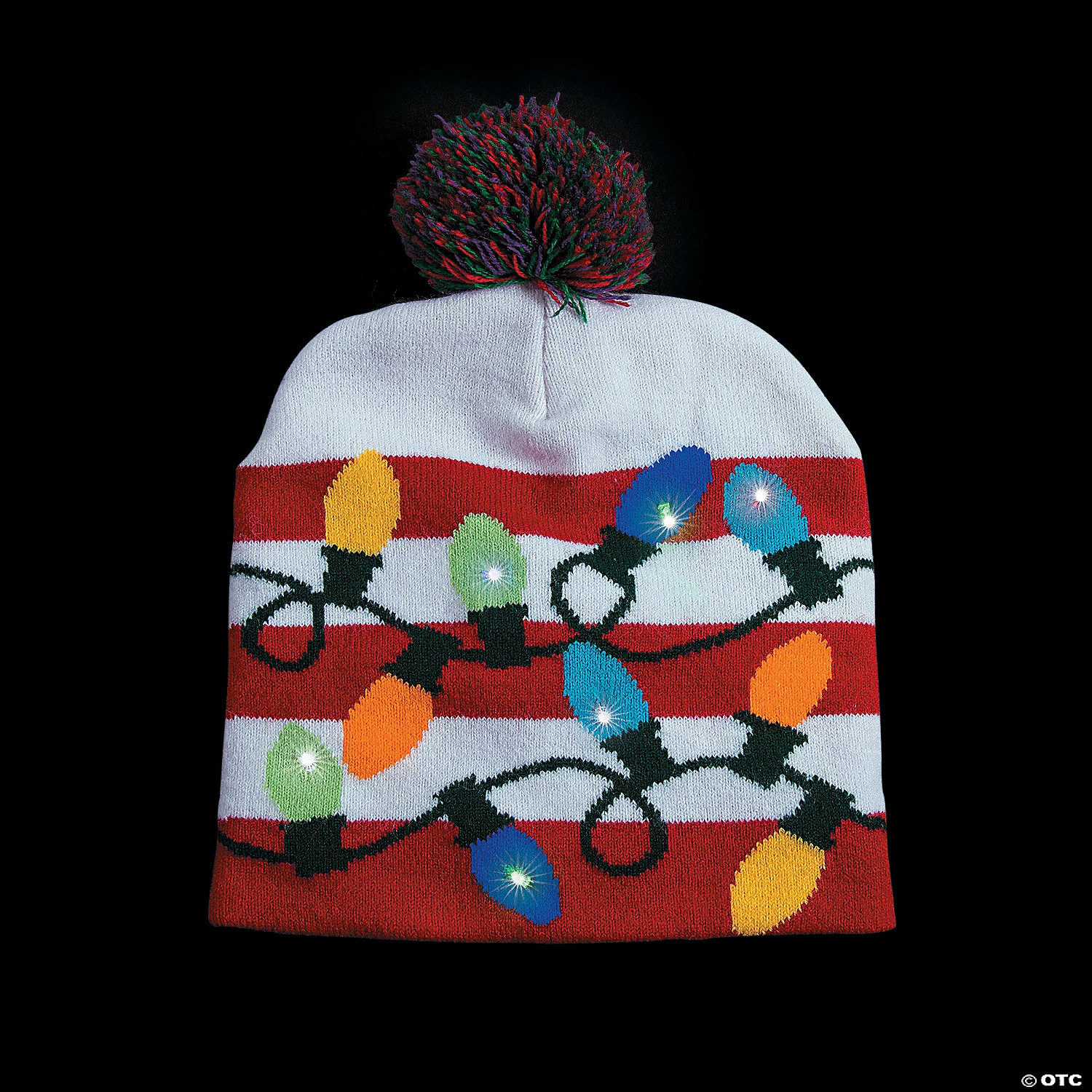 These winter hats will really light up during the Christmas season. Add them to impulse offerings, redemption center prizes and more.• Material: Polyester with plastic lights.• (12 pcs.)• Size: 8 1/4″• Includes batteries.