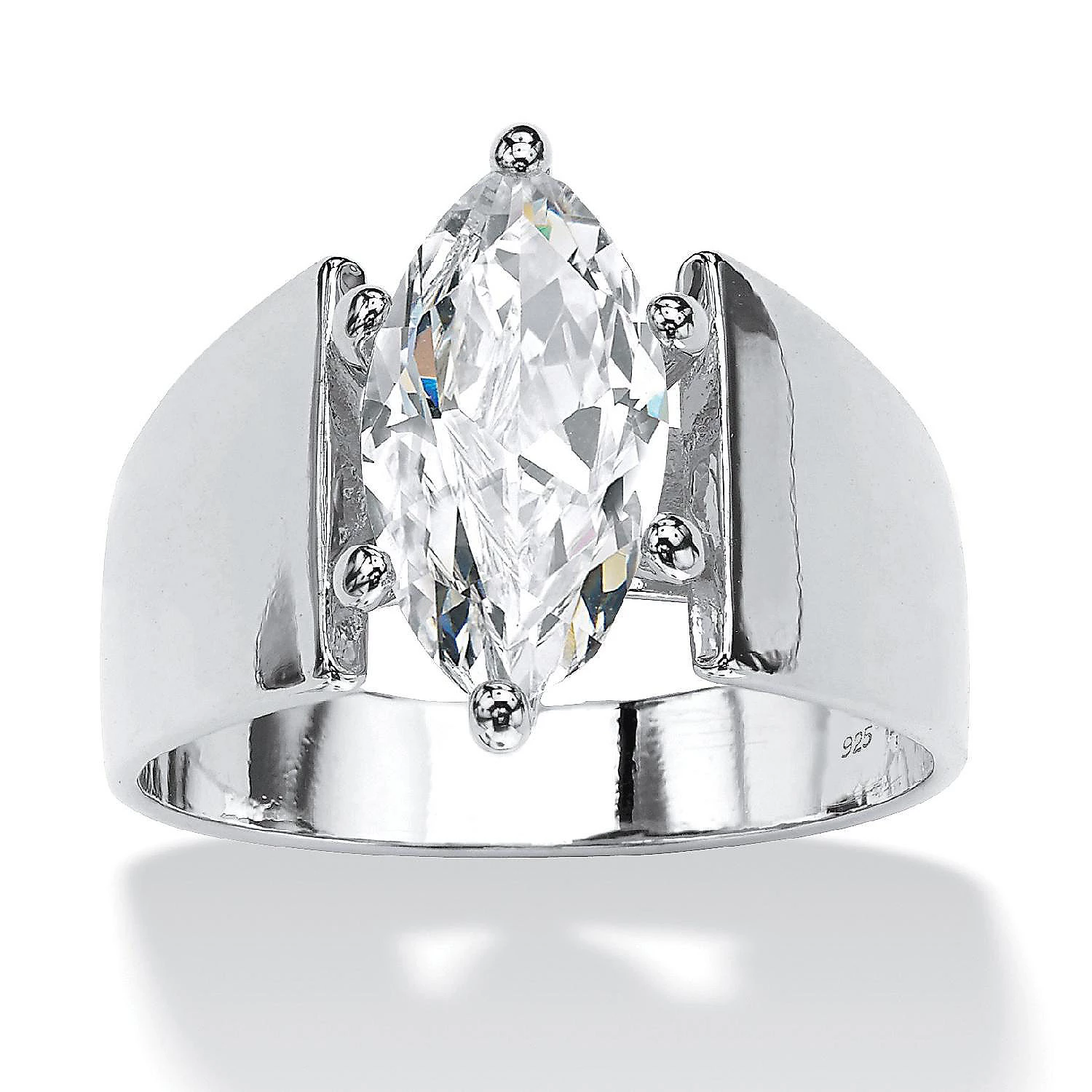 Get diva treatment when you flash this marquise-cut cubic zirconia ring glowing with 2.48 carats T.W. from a boldly beautiful sterling silver design. Sizes 5-10. All carat weights are approximate and may vary slightly from those listed.