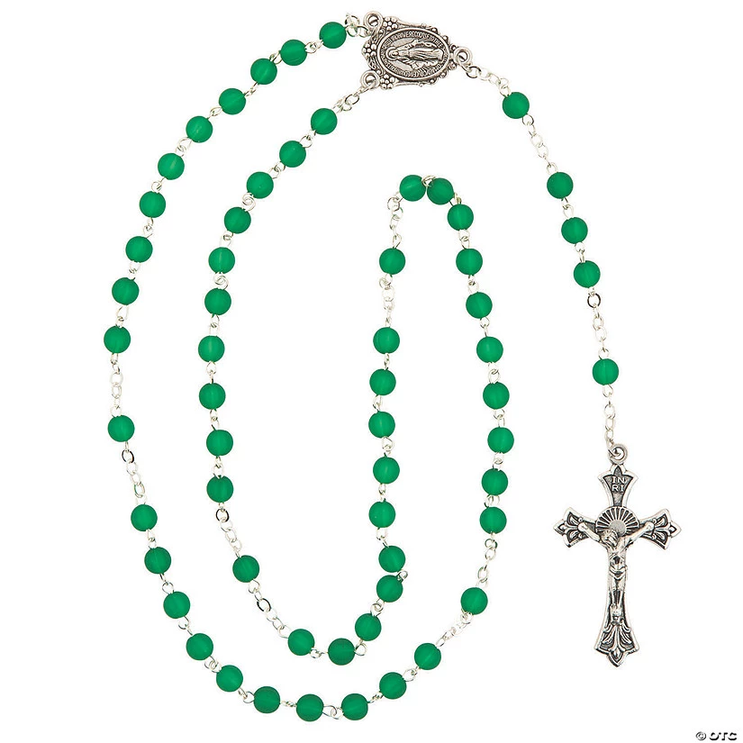 This gorgeous faux emerald green rosary makes a perfect religious gift! Give it to a loved one discovering or exploring their faith, or for a First Communion, baptism or May birthday. Check out even more birthstone gifts and faith-based presents elsewhere on this website. Metal. 18 3/4″