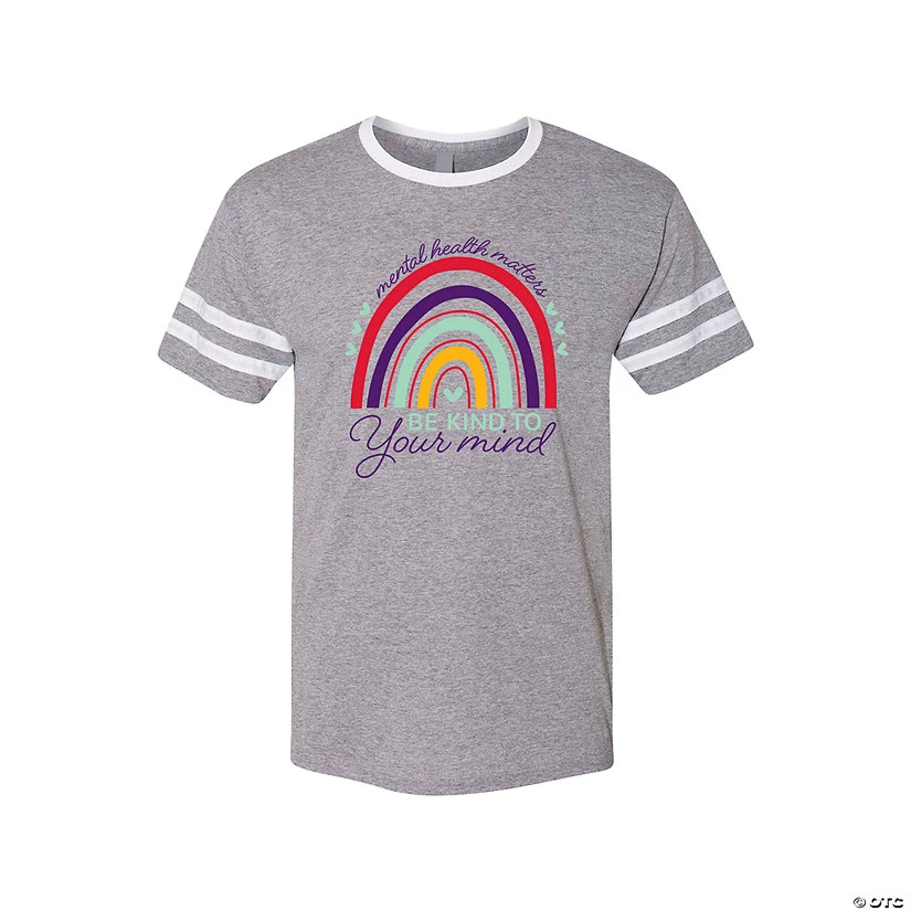 Mental health matters! Wear this comfortable and attractive t-shirt to help remind people to be kind to their mind and to spread mental health awareness. This t-shirt is a great choice to wear to a mental health advocacy event – or any day! The colorful rainbow design catches the eye and helps get the message of hope across. © OTC