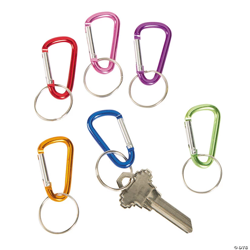 These metallic aluminum clip keychains hook securely to backpacks, purse straps and belt loops! Coming in a rainbow of vivid colors, your friends will love getting these useful clips in party goody bags! (4 dozen per unit) 1 1/2″ on a 1″ metal ring.