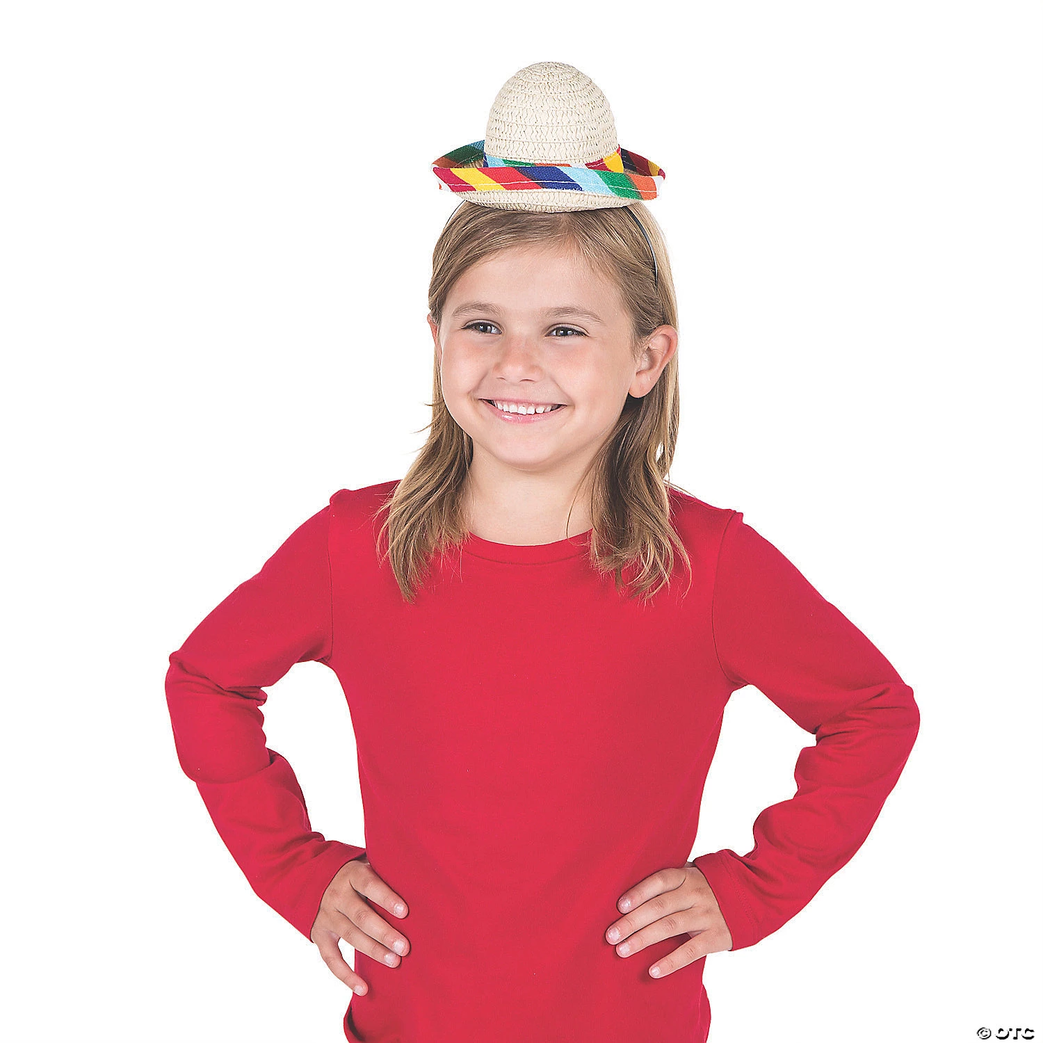 Sport these and let the fiesta fun begin! Perfect for Cinco de Mayo party supplies and accessories, these headbands come designed with a mini sombrero. For a spicy soirĂ©e, pass these out to guests as party favors or set next to a DIY photo booth to create one-of-a-kind snapshots from an unforgettable night! Straw with metal headband. 5″