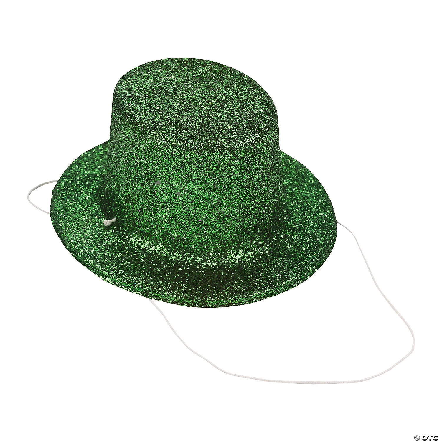 Covered in green glitter, this Leprechaun hat will make your party crowd sparkle! Perfect for a St. Patrick’s Day party, event or parade. This small, glittery hat will give you a fun leprechaun look that everyone will love. Hurry and get into the Irish spirit with these green Leprechaun hats! Each 5″ x 2 1/2″ plastic hat has an elastic band.