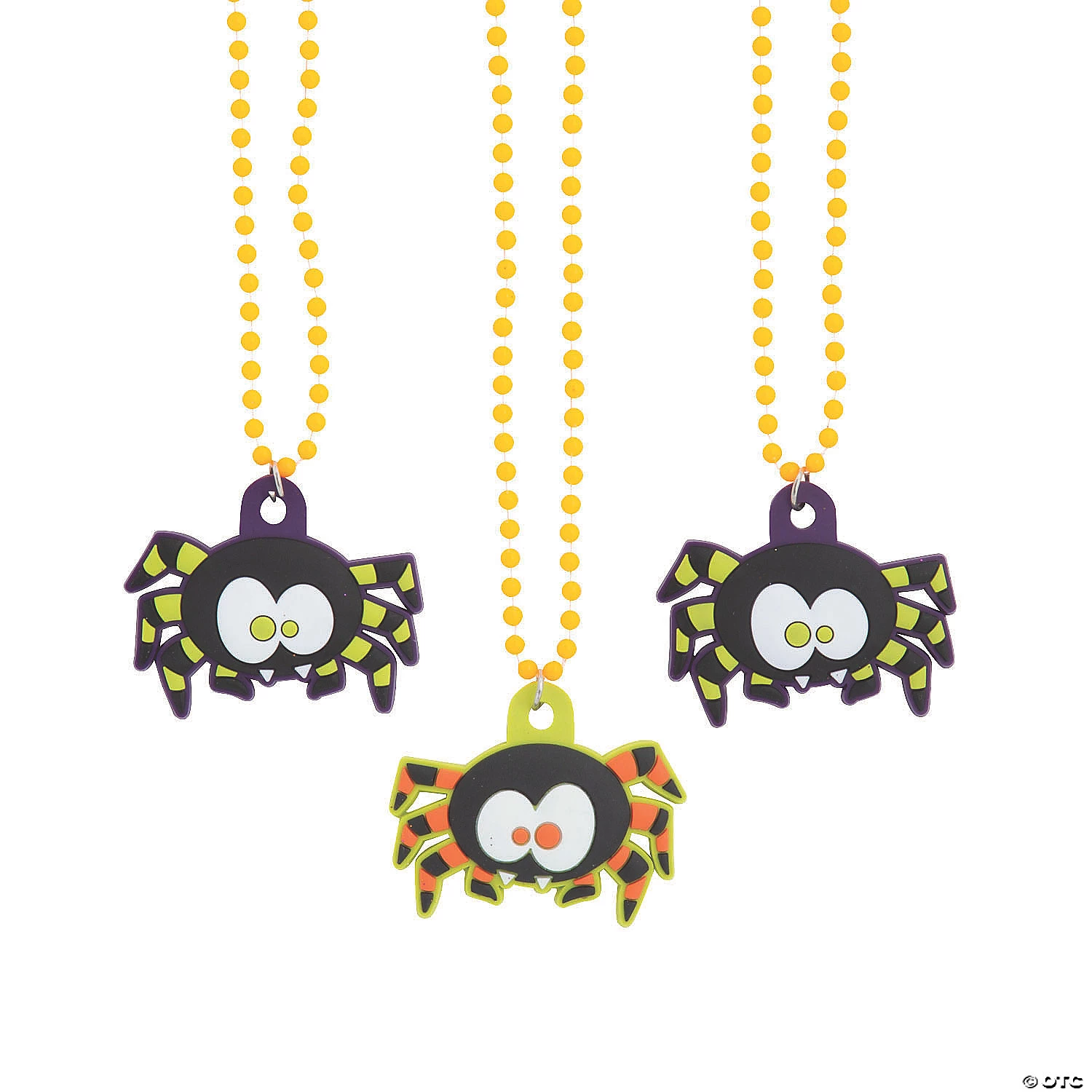 Go for creepy-crawly cool with your Halloween giveaways and hand out these spider necklaces! Fun candy alternatives for trick-or-treaters, this Halloween jewelry is scary good fun for little ones. Add these Halloween necklaces to your Halloween supplies and party favors. Plastic. (2 dozen per unit) 2 1/4″ charms on 24″ circ. beaded necklaces. © OTC