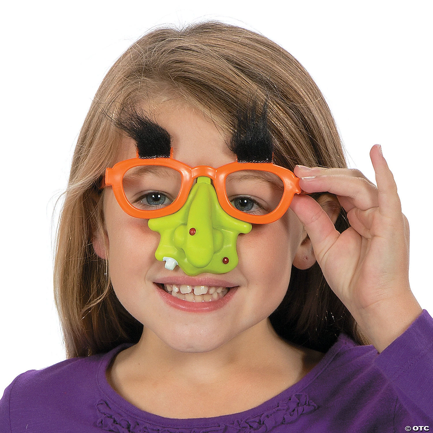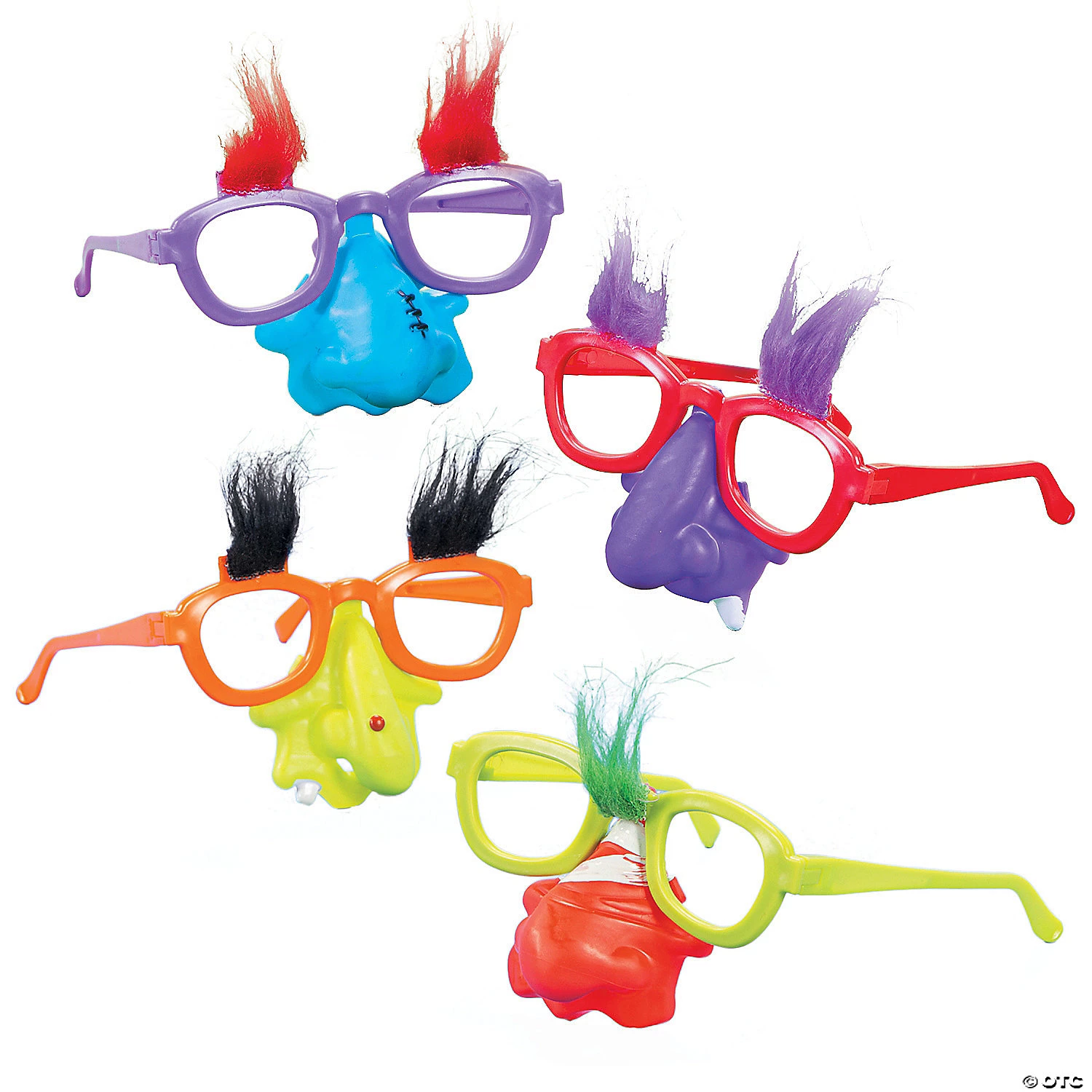 Monster in your closet? Disguise yourself as one of them with these plastic Monster Funny Glasses! A twist on the classic Groucho Marx glasses, this colorful eyewear comes complete with thick frame glasses, bushy eyebrows and comically large monster nose. With 4 silly styles, these glasses also make a fun Halloween costume in a flash! For novelty use only. 5″ x 2 3/4″ with 5″ ear pieces. © OTC