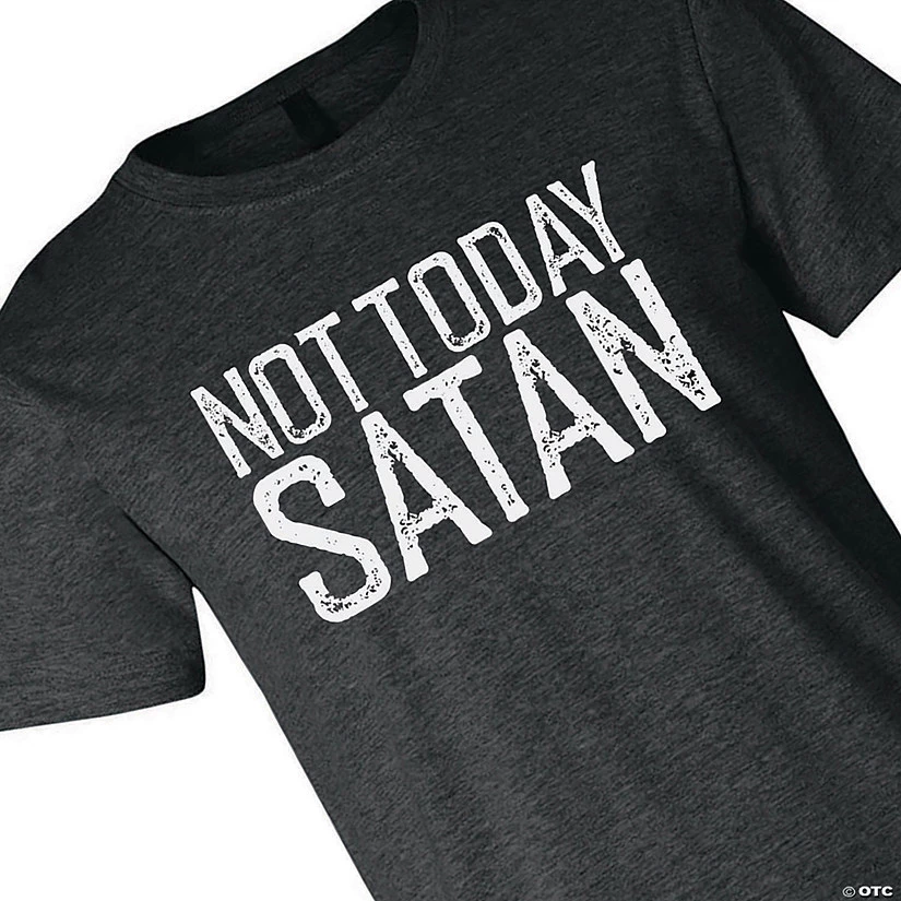 “Not Today Satan.” Emblazoned with this famous quote, this graphic tee brings major sass! Wear your “Not Today Satan” shirt for a comfortable, everyday look. For a trendy t-shirt outfit, style the neutral heather grey tee with your favorite casual pieces like distressed jeans and boots. A unique take on a Christian t-shirt, the tee is also a fun look for a church event! © OTC