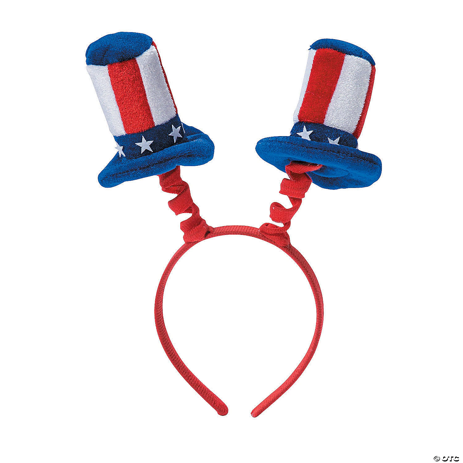 Perfect as Fourth of July accessories or party favors, these head boppers feature top hats Uncle Sam would be proud to wear. • Material: Felt with plush patriotic hats. • (6 pcs.• Size: 5″ x 10″