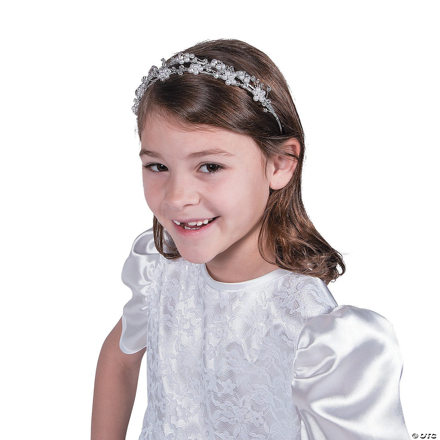If you’re looking for a gorgeous First Communion accessory, this headband is one beautiful buy! Featuring faux pearl beads, this headband dazzles and delights, not only in the style department, but also the savings department. Plus, after First Communion, your little girl can pair this accessory with holiday outfits or use it for everyday wear! Metal. 5 1/4″ x 5 3/4″